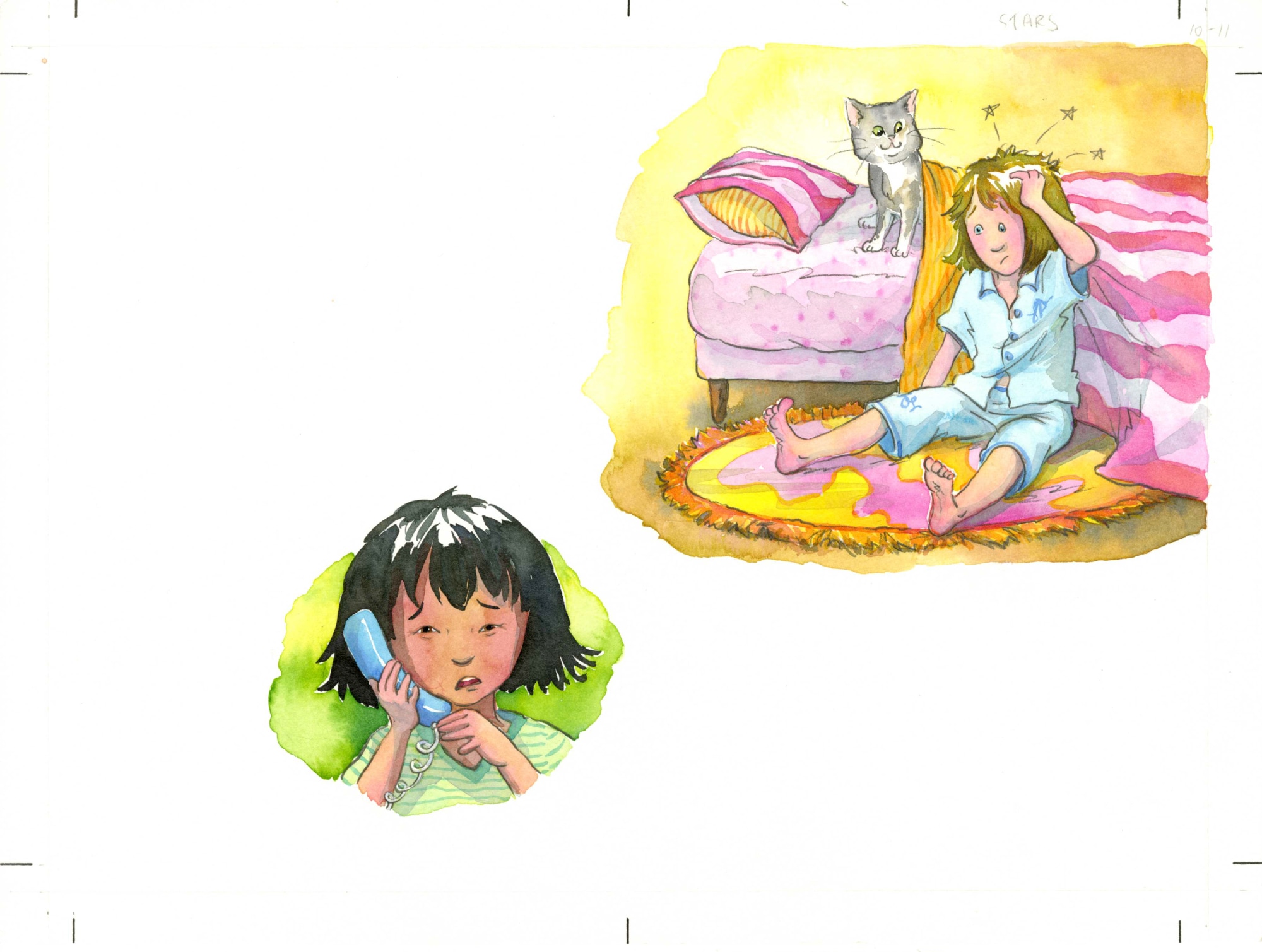 Illustration for the early reader "Pyjama Party!", ©2002 Michelle Poploff, Scholastic Inc, USA, p.10-11