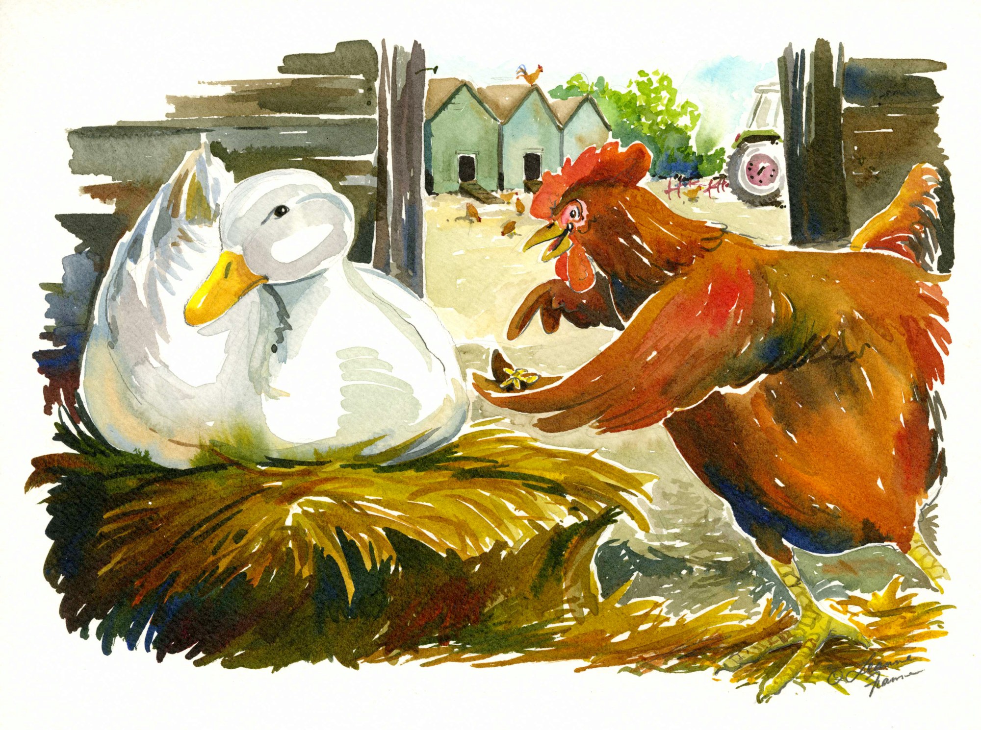 - Subject Matter: Little Red Hen talking to duck
