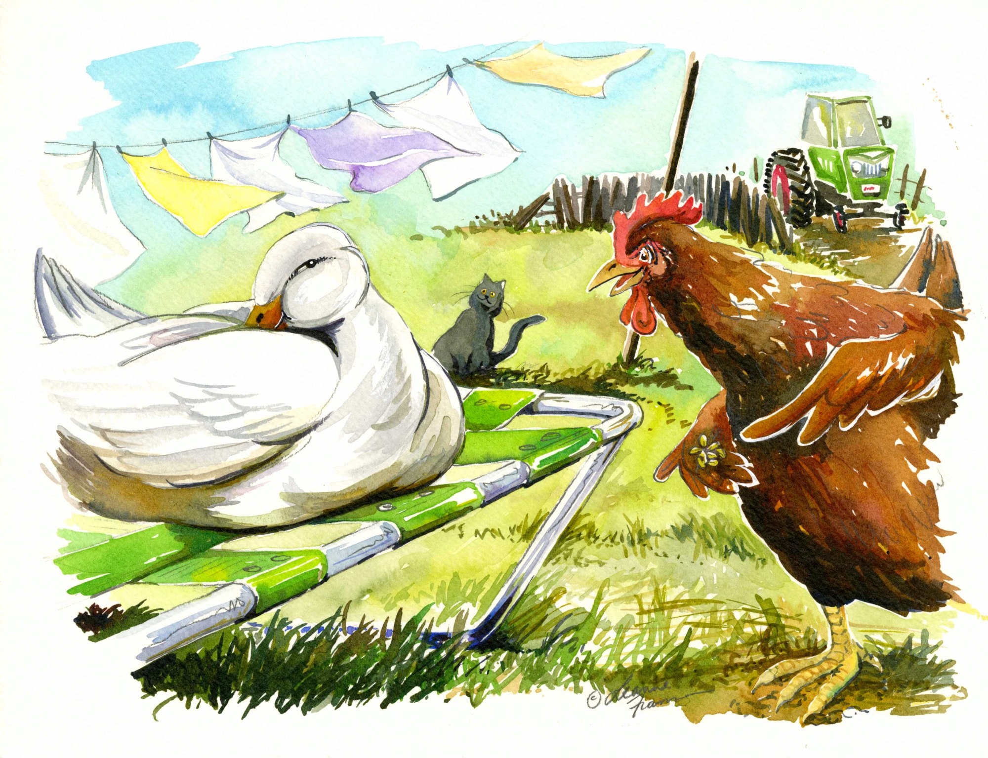 - Subject Matter: Little Red Hen talking to duck