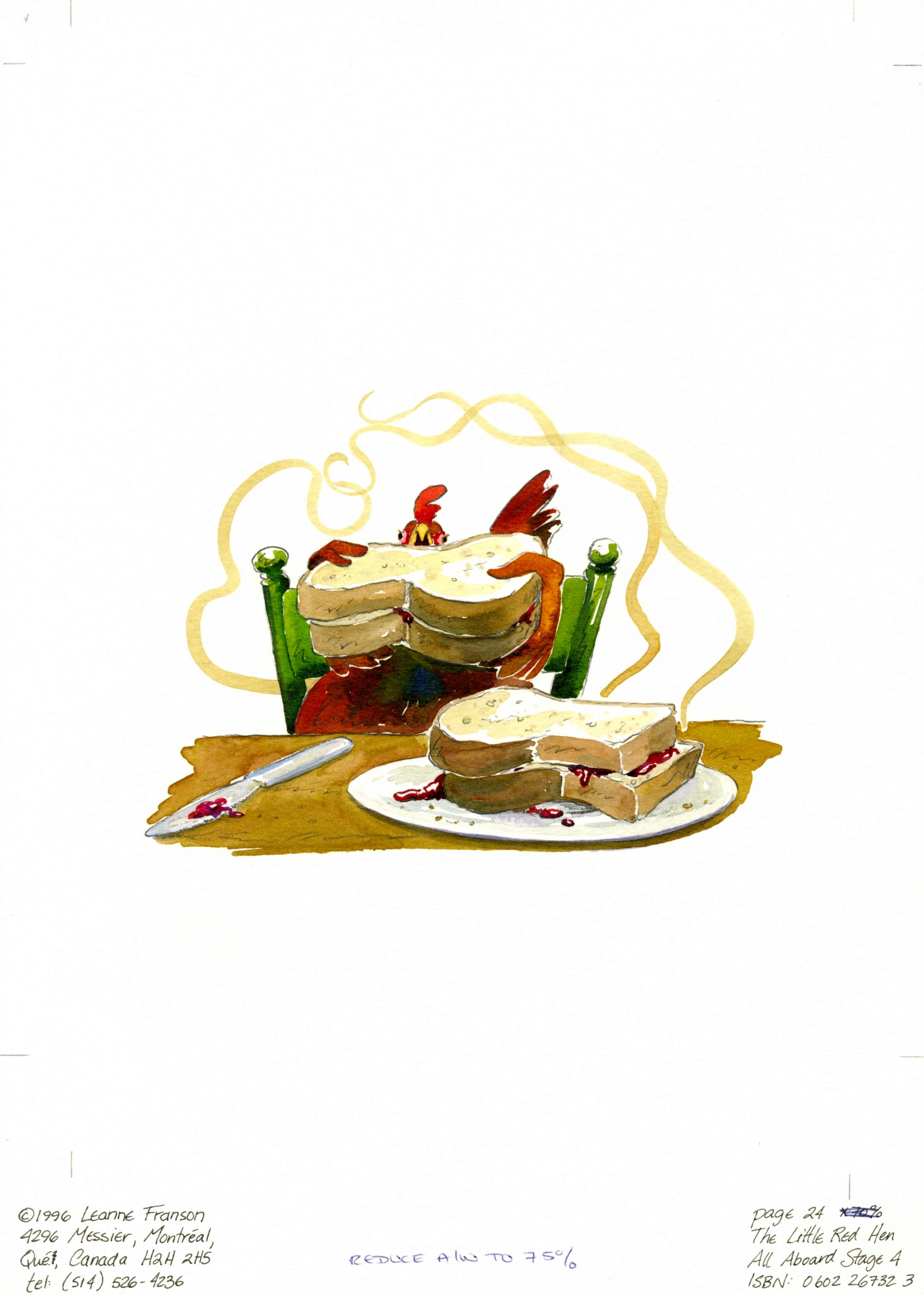 - Subject Matter: Little Red Hen eating bread and jam