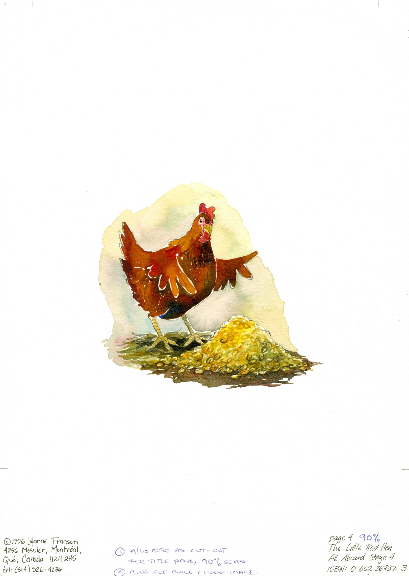 Illustration for "The Little Red Hen", "All Aboard" early reader series ©1996 Leonie Bennett, Ginn and Company, UK