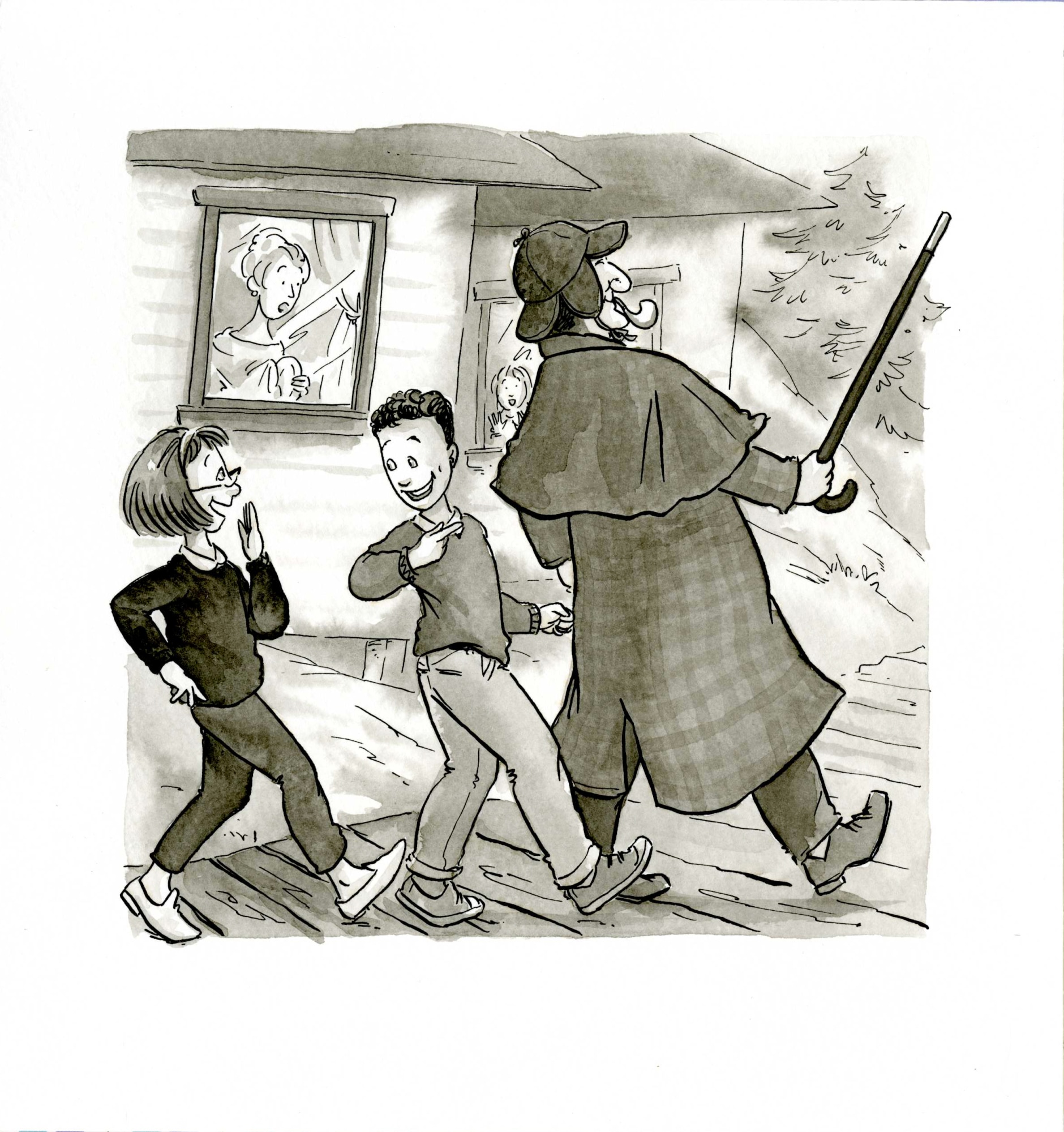 Illustration from the novel "Thumb on a Diamond" ©2006 Ken Roberts, Groundwood Books (p. 14) India ink washes and dip pen on acid-free cotton paper.