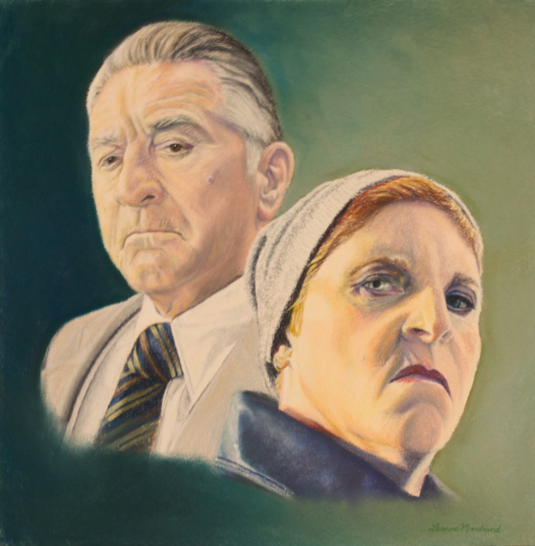 I noticed that in one of the selfies I took for an art project, I resembled Robert De Niro. So, just for fun, I painted us together.