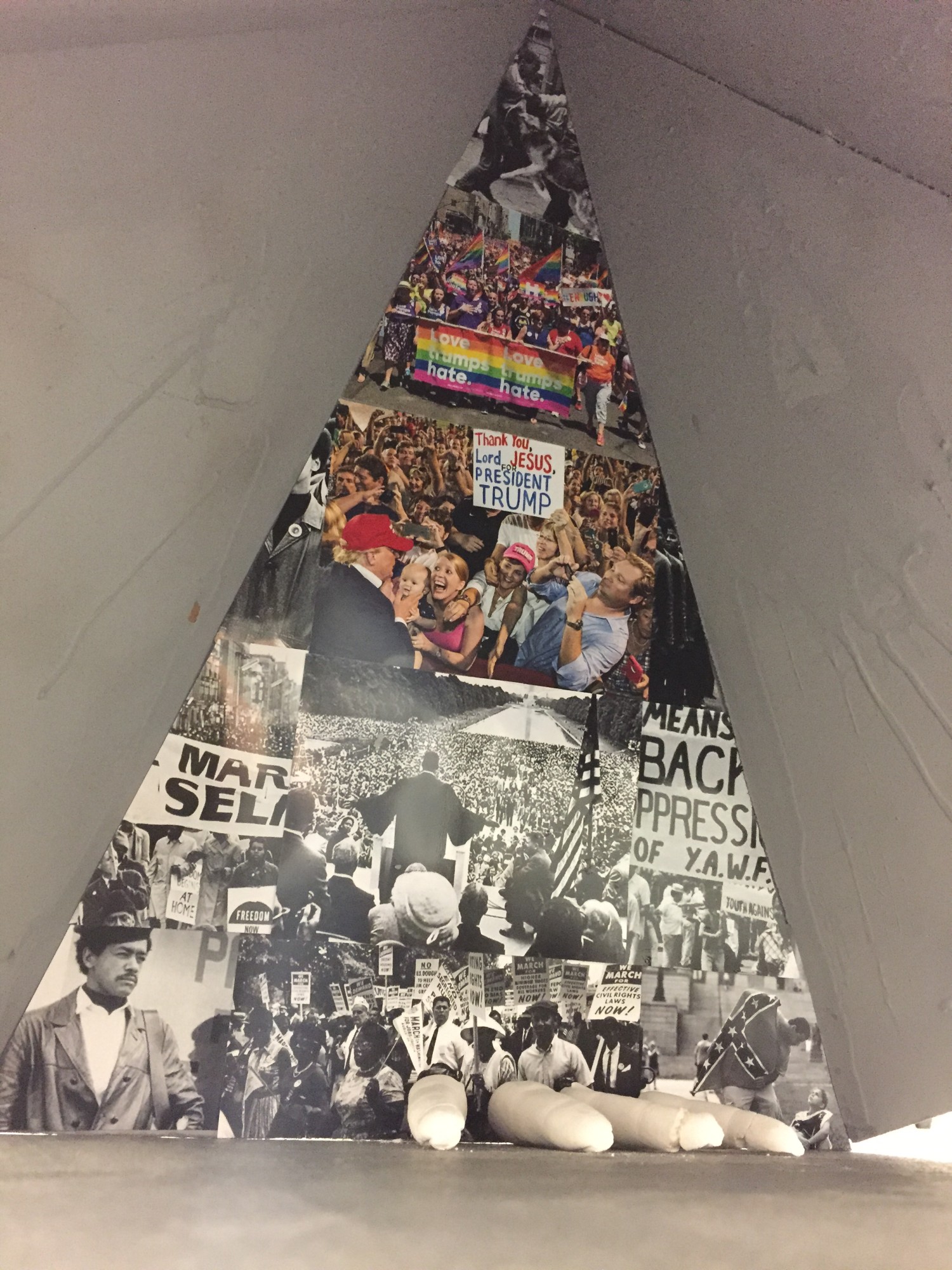 The hands of the people in society prop up the pentagon while being paid pennies the dollar. The government cuts off the fingers of the hand that helps it while having its underlining issues only visible to those willing to look under the gaps.