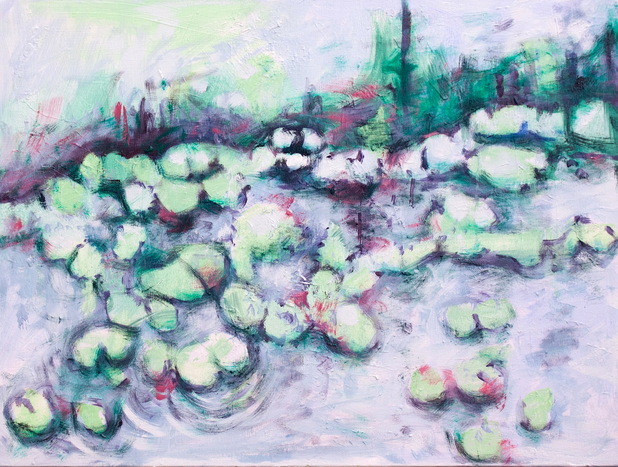 Fall Ponderance is a captivating oil painting that captures the serene beauty of a pond in the fall season. The artist was inspired by a photo taken near Fleischmanns, New York, during a bike ride. The artwork showcases the vibrant colors of autumn foliage reflected in the still waters of the pond, creating a sense of tranquility and contemplation. The unique aspect of this artwork lies in the artist's use of abstraction to convey the essence of the scene, allowing the viewer to experience the beauty of nature in a new and refreshing way.