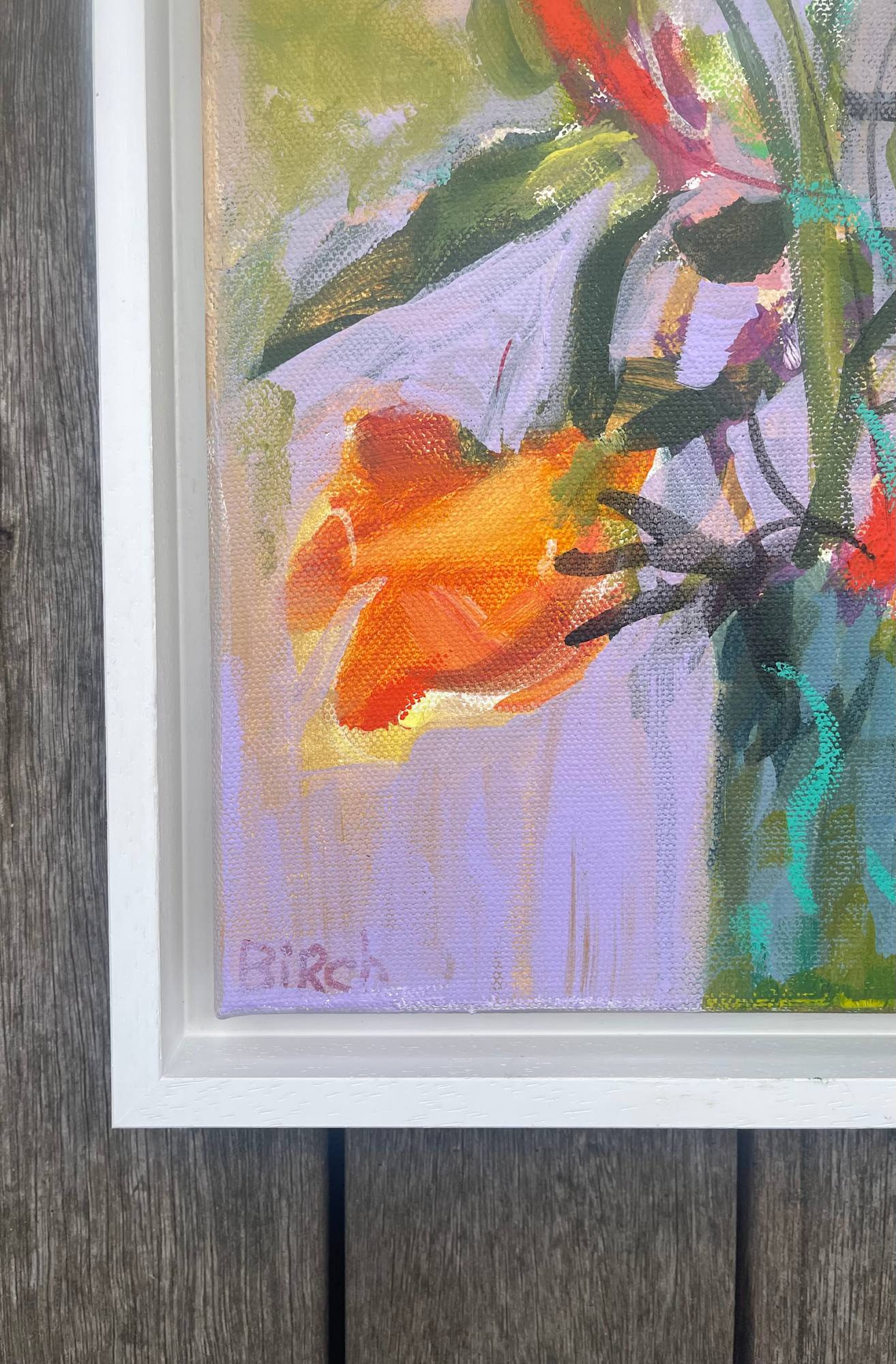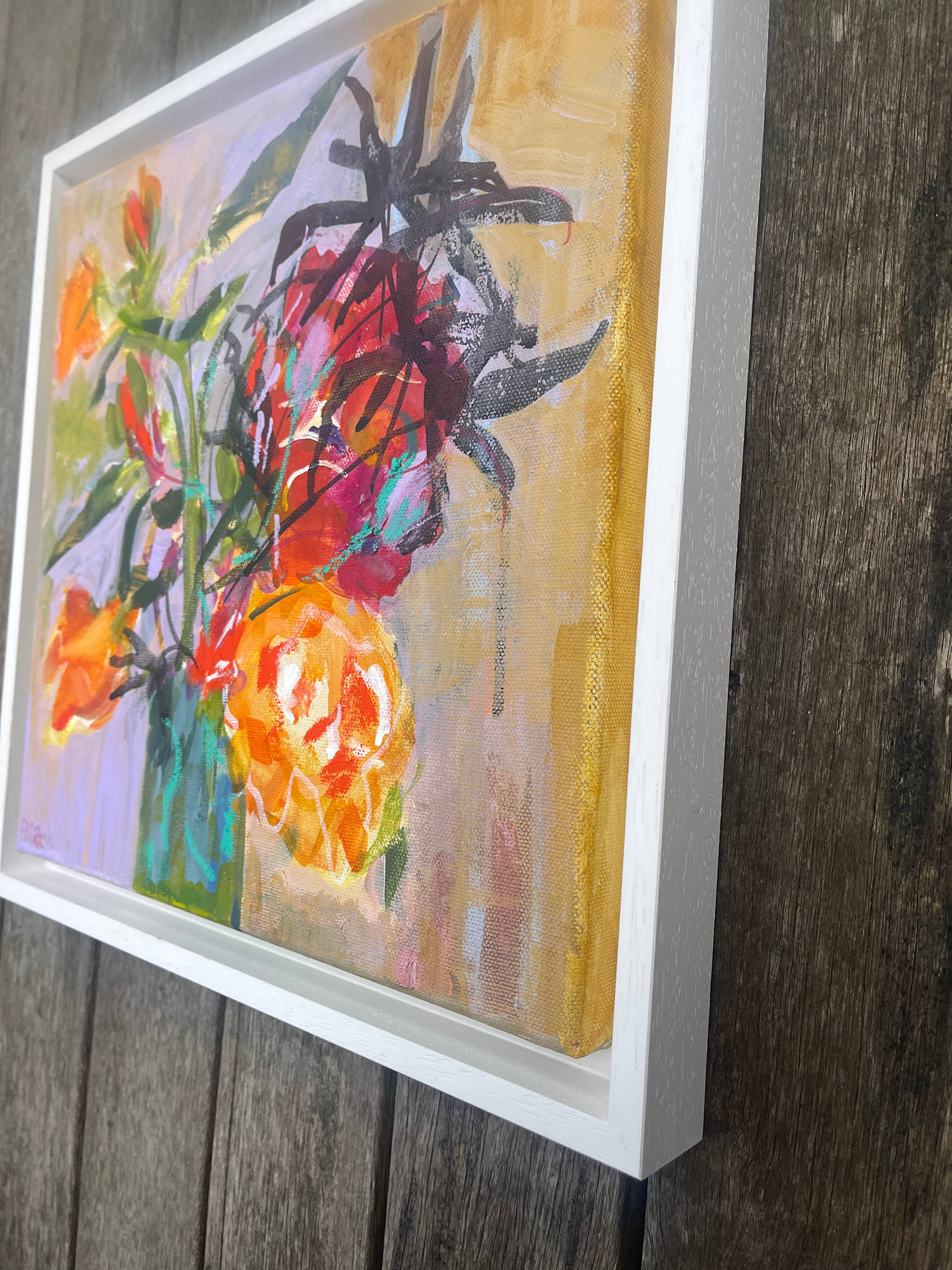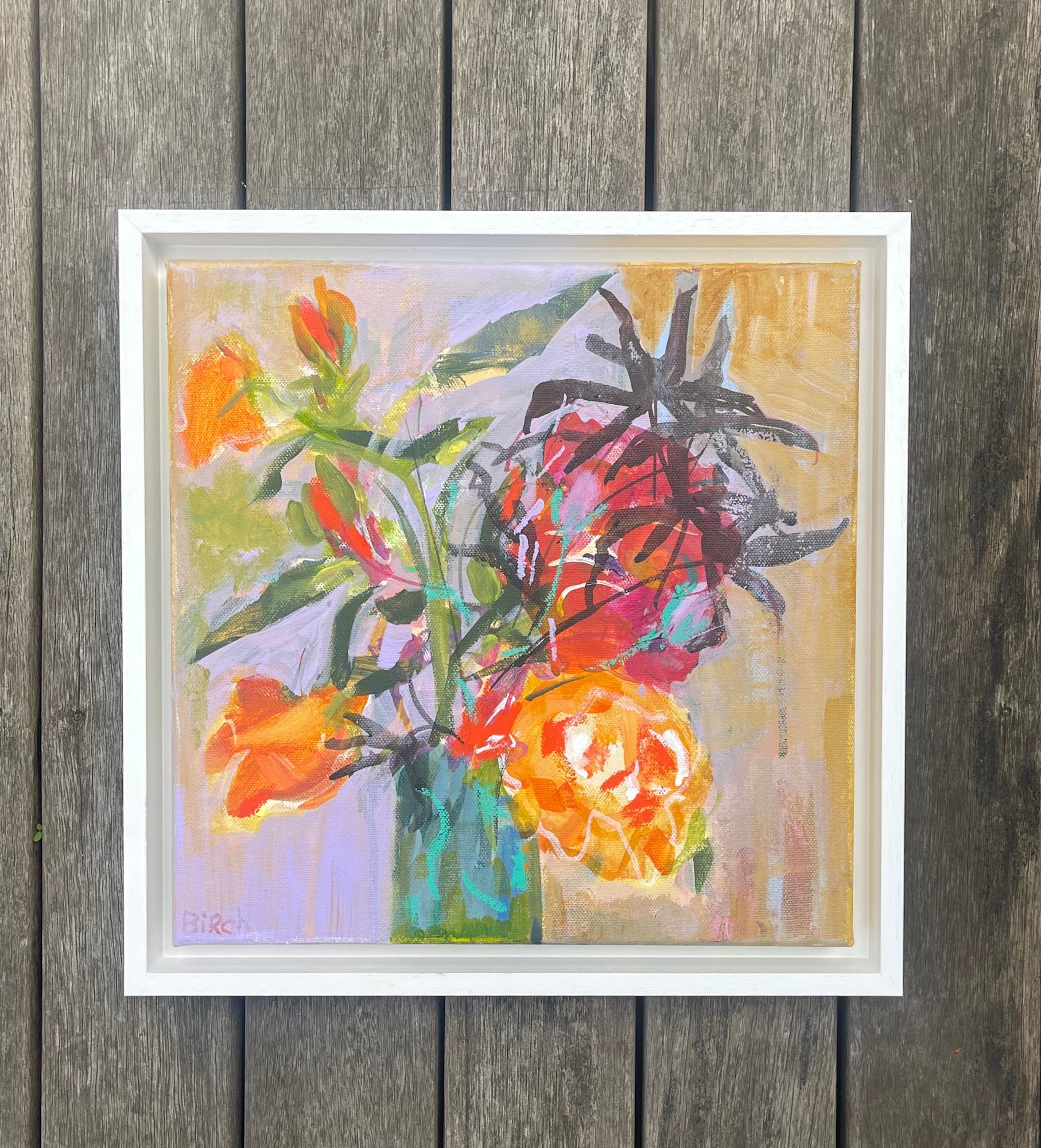 Selections of flowers from my garden and acer leaves White Float Frame Overall size 34 x 34 cms