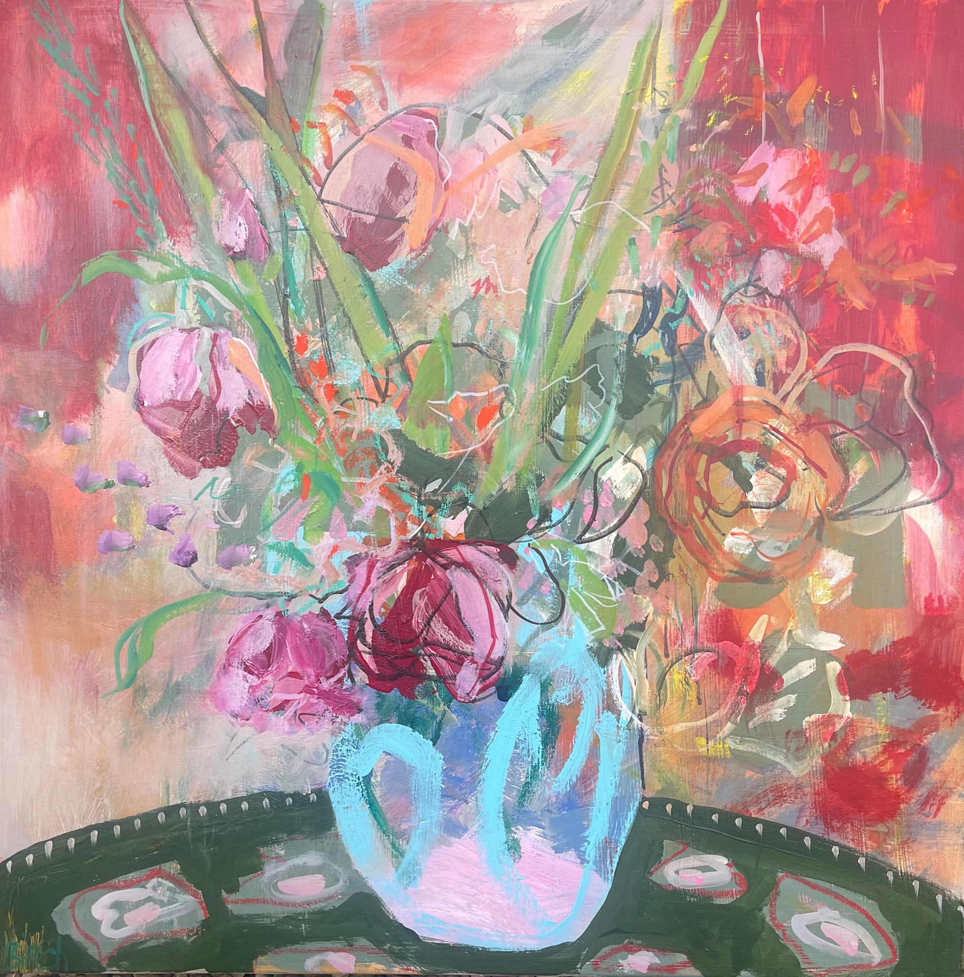 Big Vase on my round table and a host of blooms, making for abstraction, which I love.