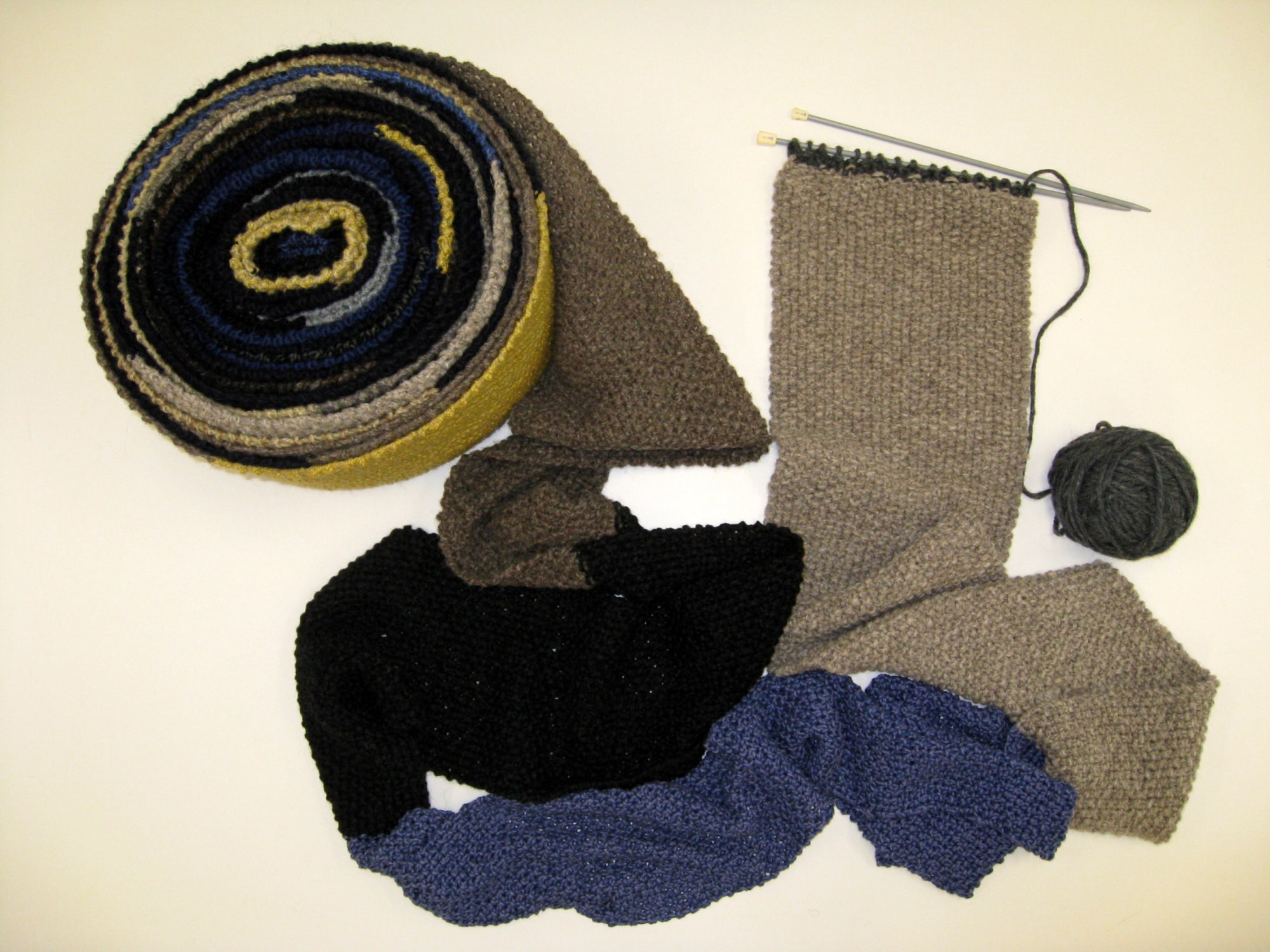 The WWII War Office's request for knitted garments known as 'home comforts' provided Florence with the opportunity to publicly appear to be supporting the war effort. Privately, knitting gave her time to grieve over her family's decimation - the deaths of her husband and eldest son; the absence of two sons away at war. Florence worked in a conflicted state to rationalize and emotionally resolve the duality of supporting the war effort while sacrificing her sons. She had to come to terms with enabling her children to put their lives at risk while battling the strength of the mother-child bond. Florence took to knitting to physically keep her sons warm, emotionally connect with them, do her patriotic duty and provide a means for processing the traumas of war. Endless knitting became a repeated prayer, a meditative chant of 'knit one, purl one,' a mantra to calm a battle-weary mind - a home comfort.