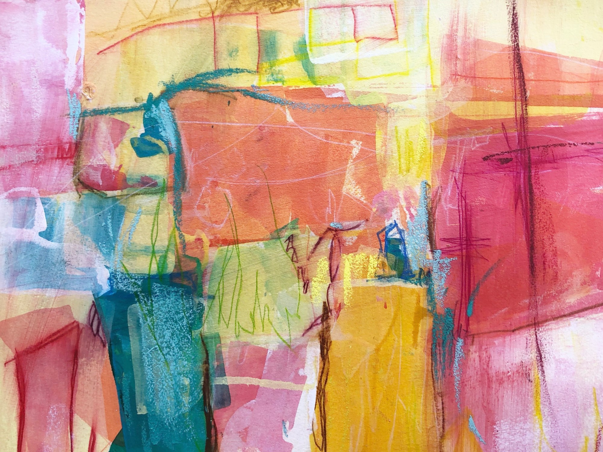 Leslie is fascinated by the many layers, unique marks and ability to create transparency and opacity in oil & cold wax, that hints toward the human condition.