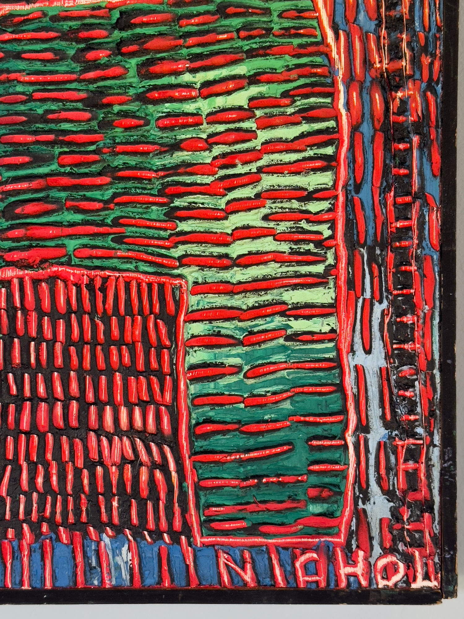 - Signature: Carved Nichol on front bottom right Black marker Nichol on back