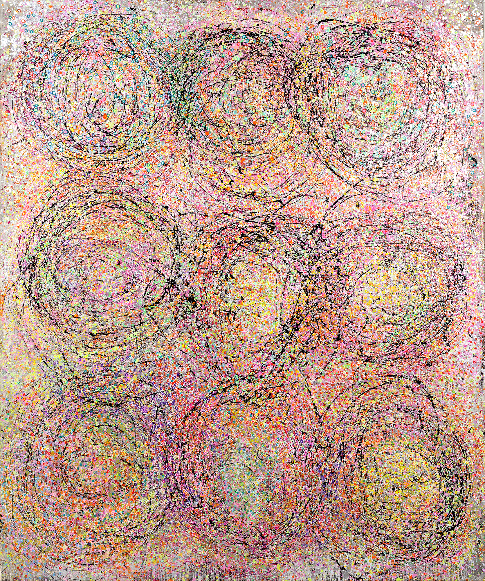 IT BEGINS by Leslie Parke  Image: "It Begins," 72 inches x 60 inches, oil paint and acrylic marker on canvas, ©2024 Leslie Parke