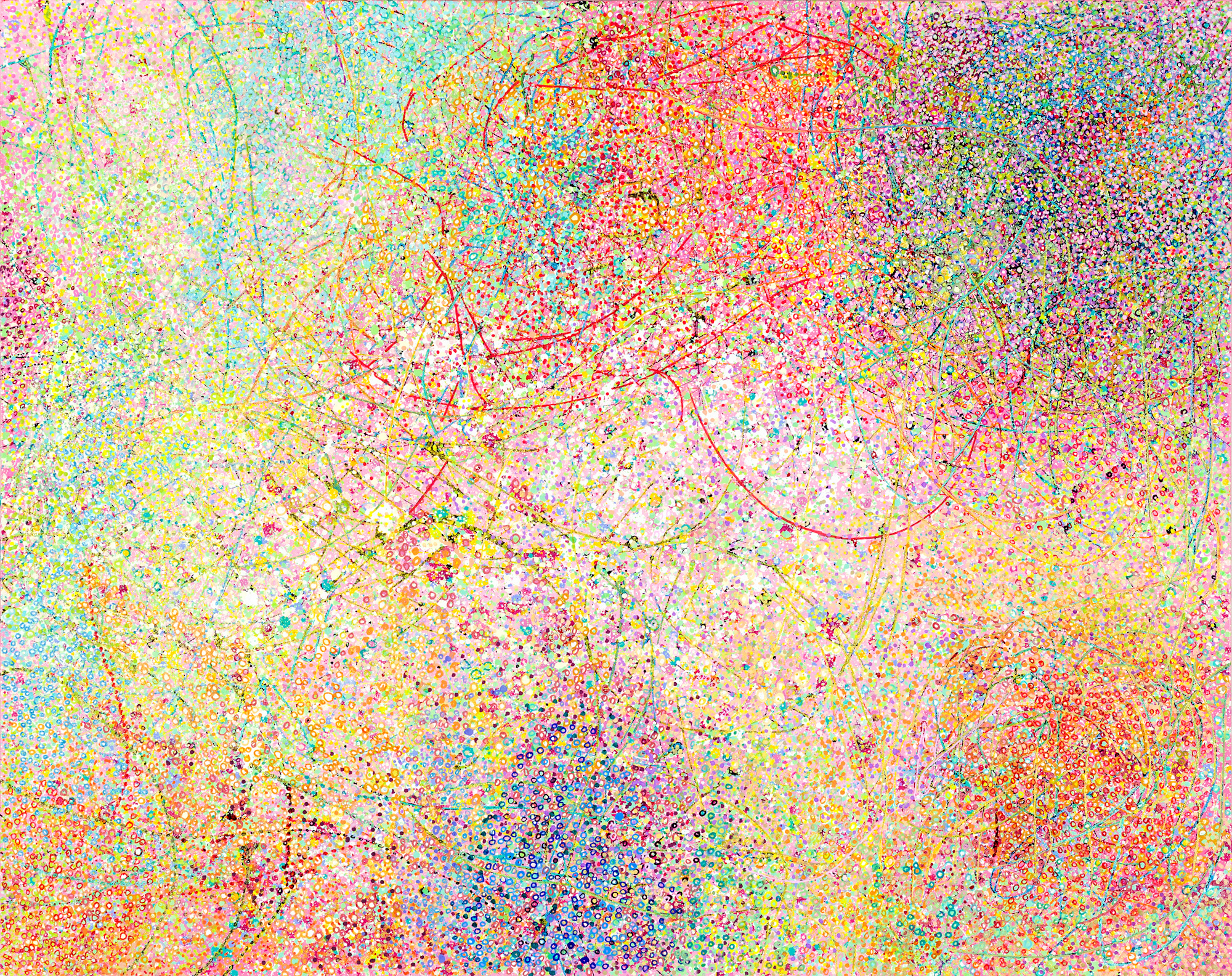Spinner of Dreams by Leslie Parke  Image: "Spinner of Dreams," 38 inches x 48 inches, oil paint and  acrylic markers on canvas, © 2023 Leslie Parke