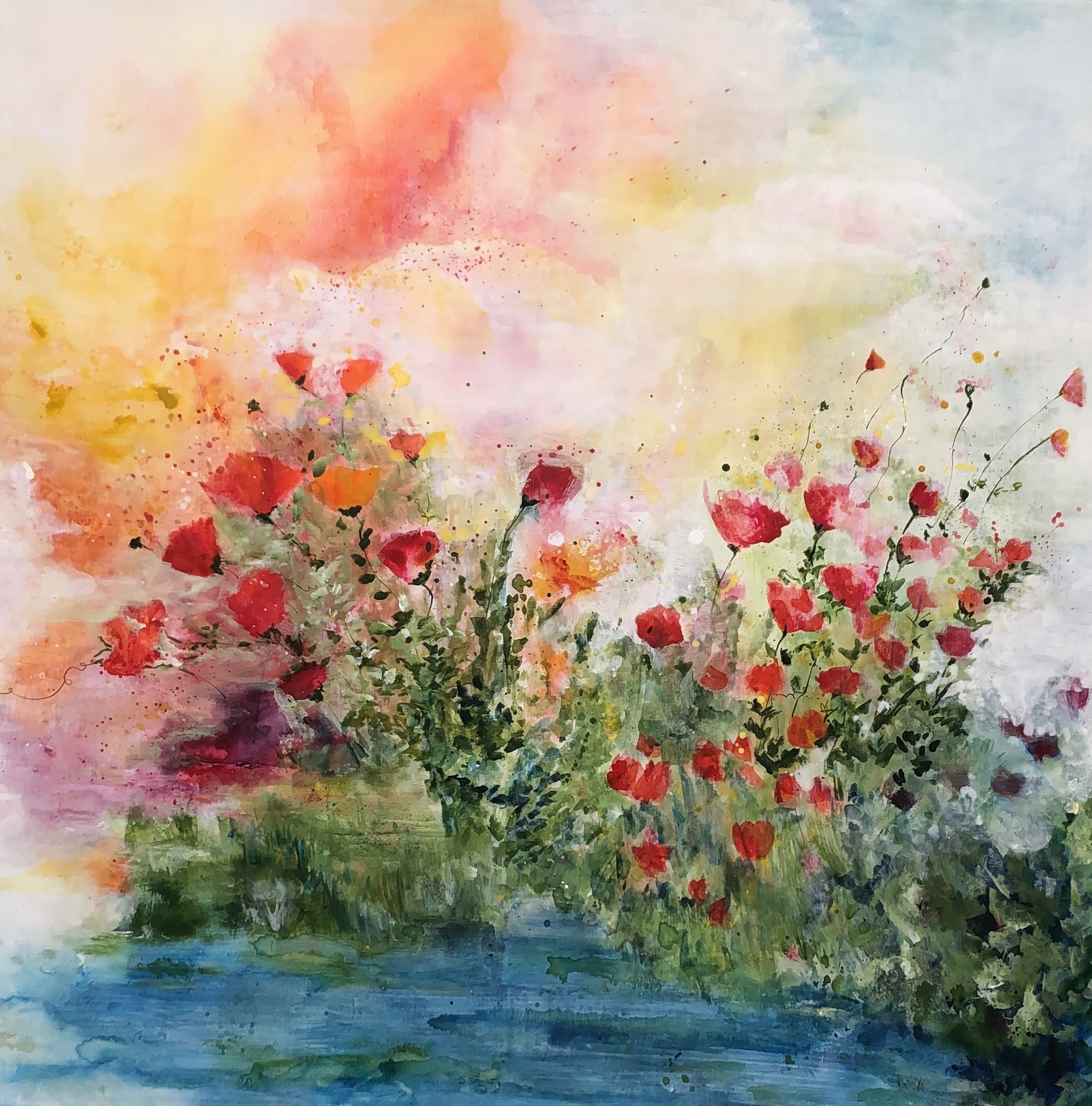 Klaprozen met hun kwetsbare bladeren groeien in omgewoelde grond.