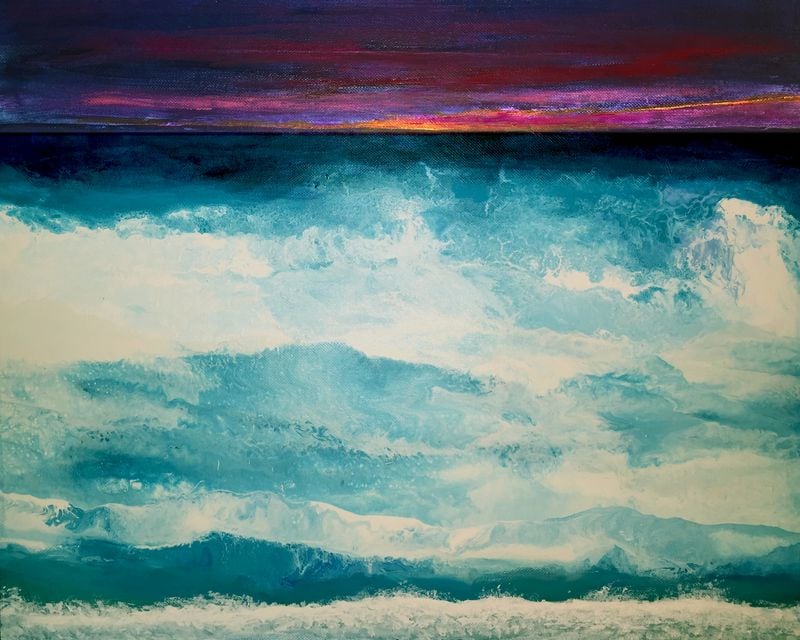 I need a vacation and this is where I want to be. Hearing the waves break, watching the sun set and just being away. From everything. From everybody. Just for awhile. This abstract , contemporary seascape canvas painting has been mounted on a DaVinci 1.5" deep pro panel. The sides are painted black, all surfaces are coated with a UV resistant satin finish and it is ready to hang.