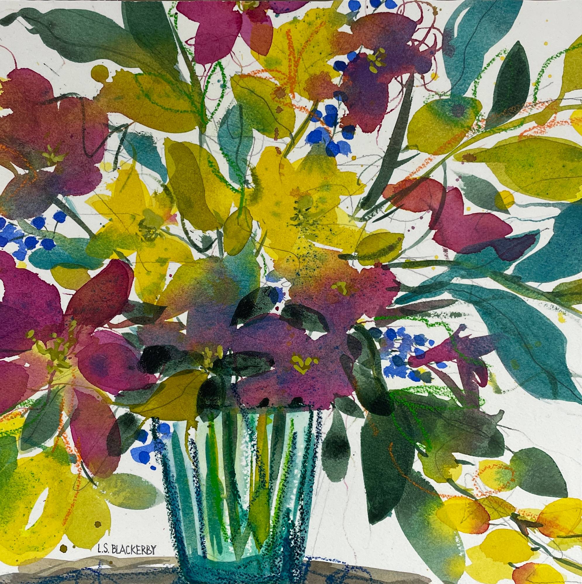 Watercolor and mixed media on watercolor paper. Mounted on birch panel, varnished with cold wax and framed in natural birch slip- frame.