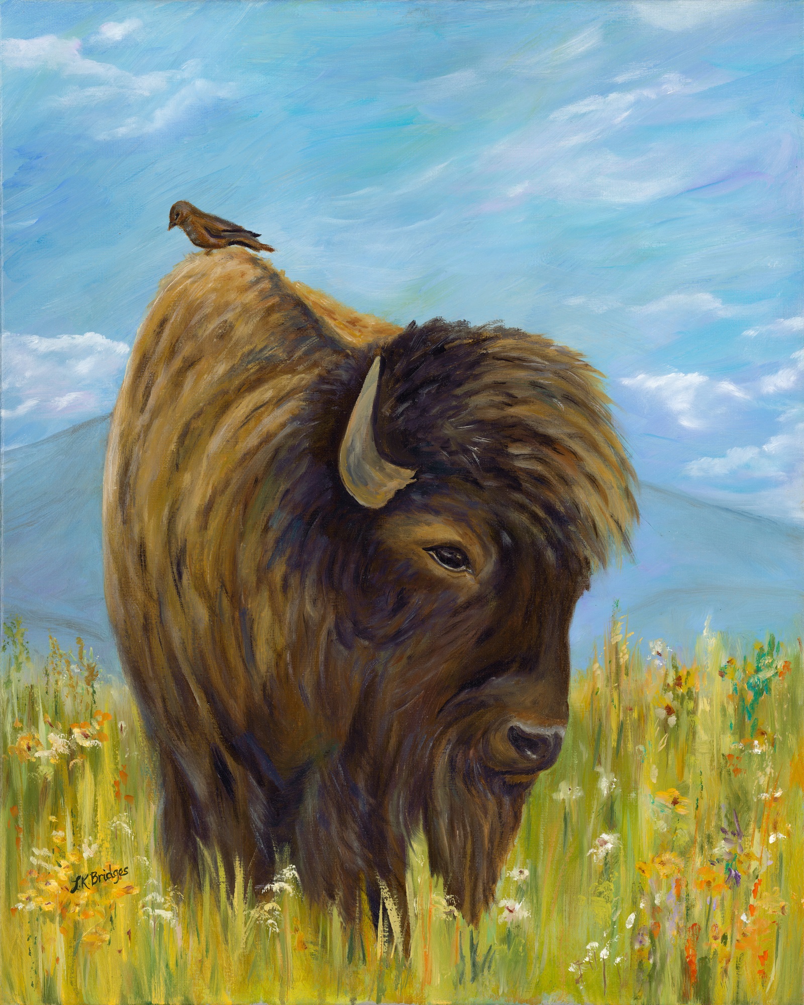 A Bison and a Birdie by Linda Bridges  Image: A Bison and a Birdie