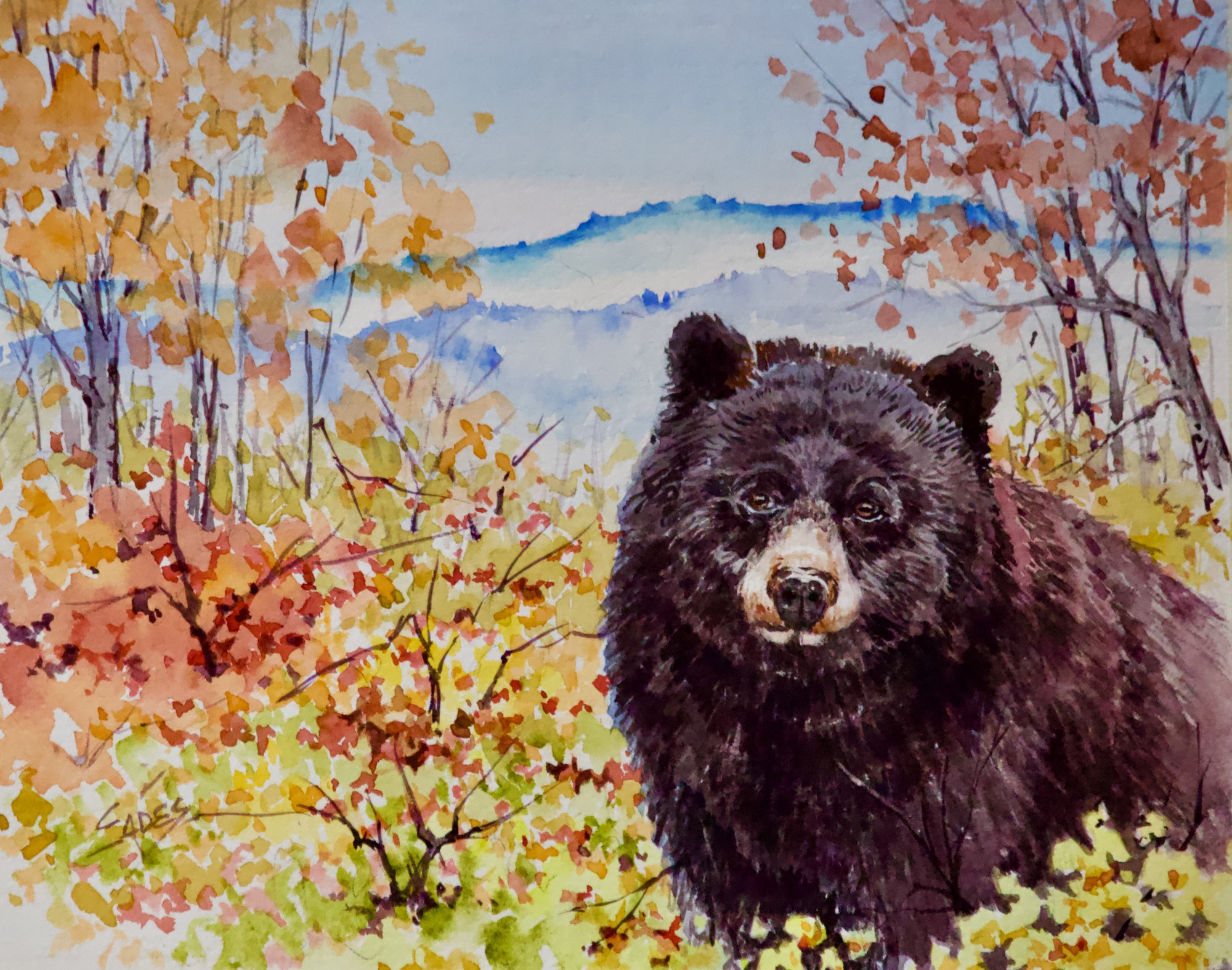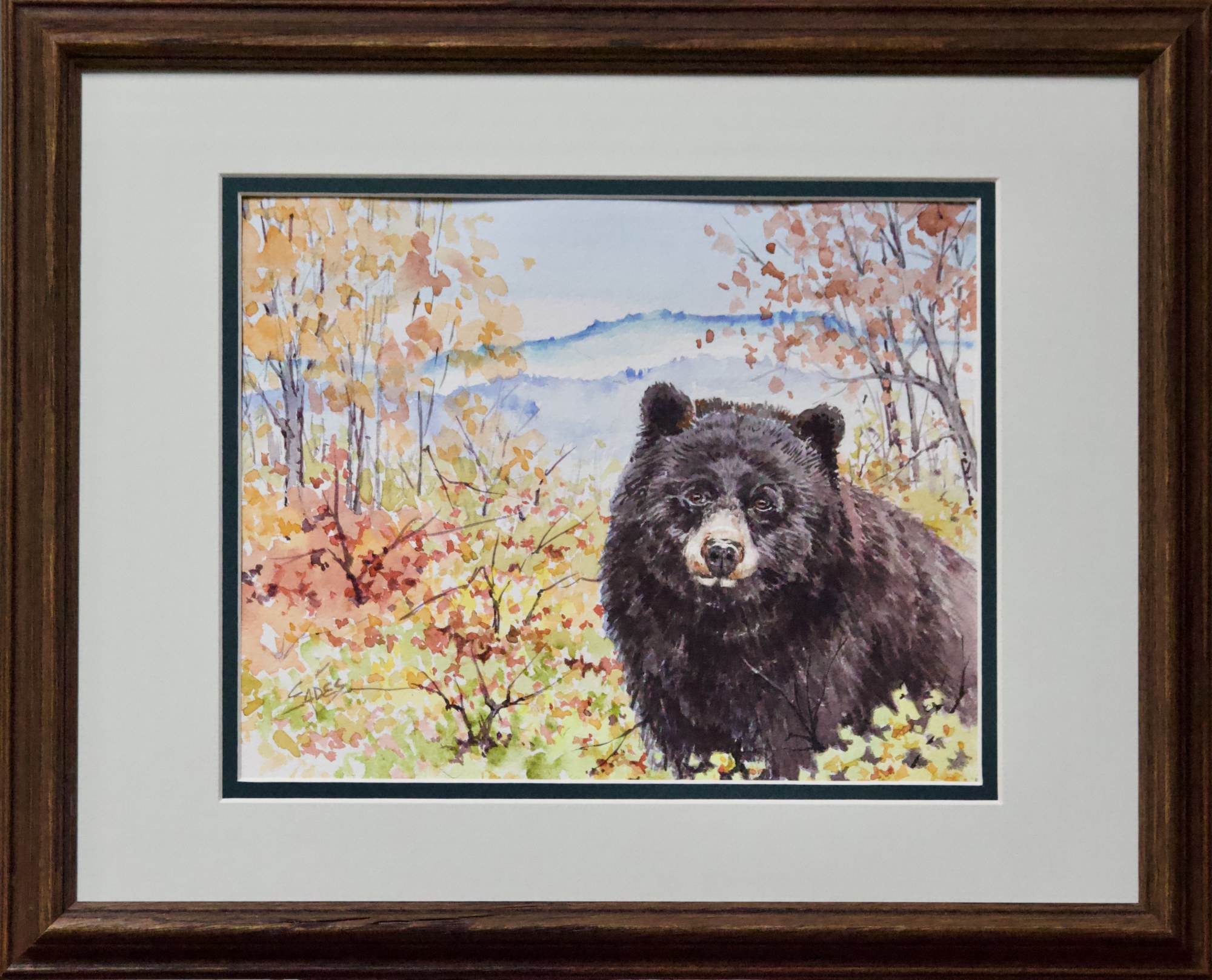 This sweet fellow is enjoying the cooler weather. Although he looks real friendly, better keep your distance and admire him from afar. This watercolor is framed and ready to hang.