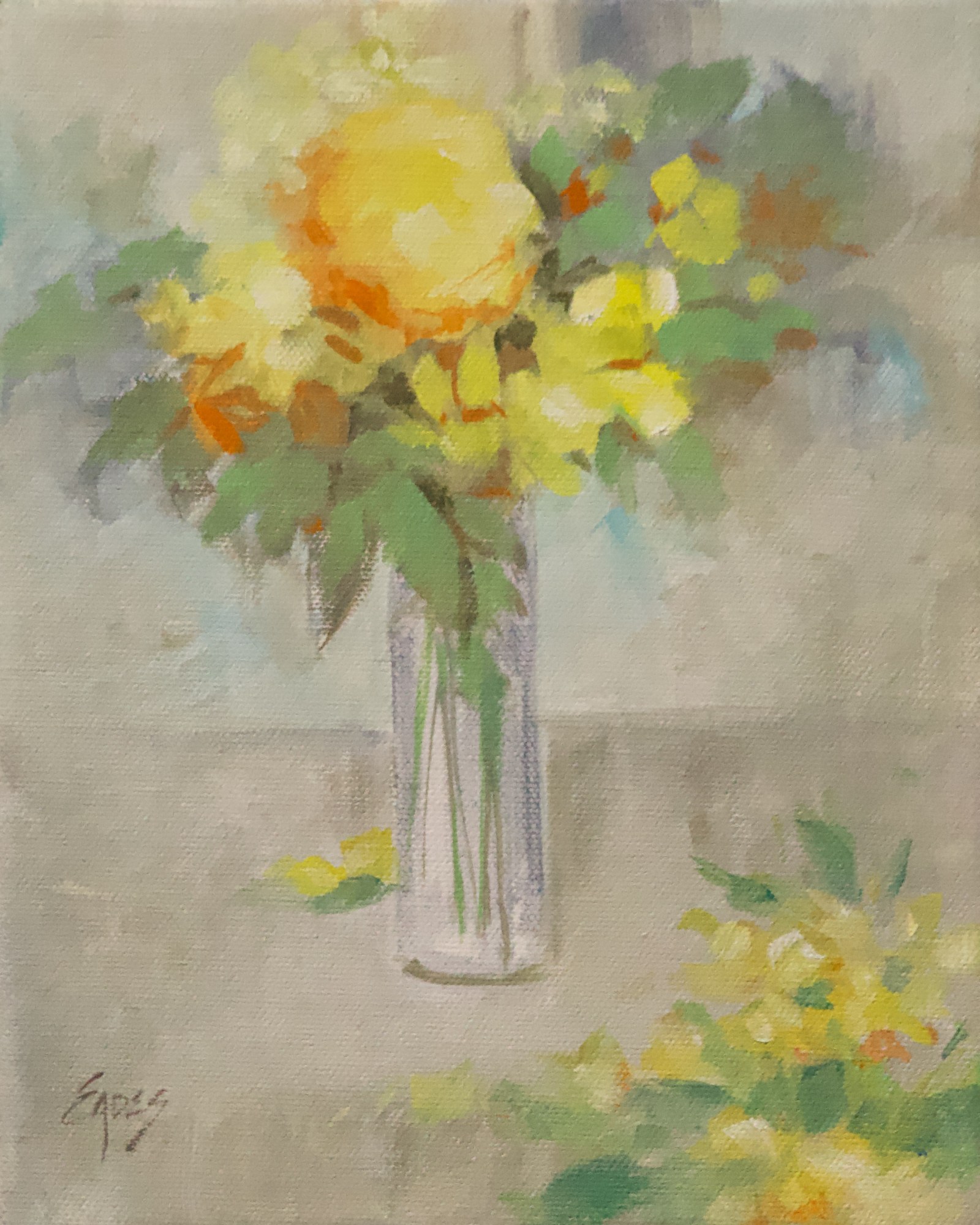 Soft and Lovely is this 10" x 8" painting of a beautiful Spring Bouquet. Oil painted on the Gallery Wrapped Canvas means this piece does not require framing, but of course you may frame it if you prefer to display the art in that way. Wired and ready to hang.