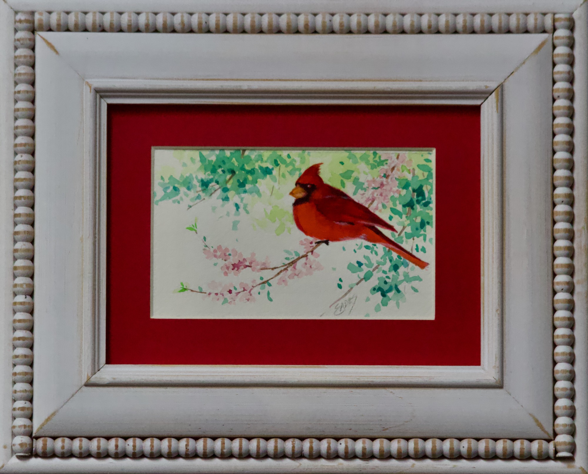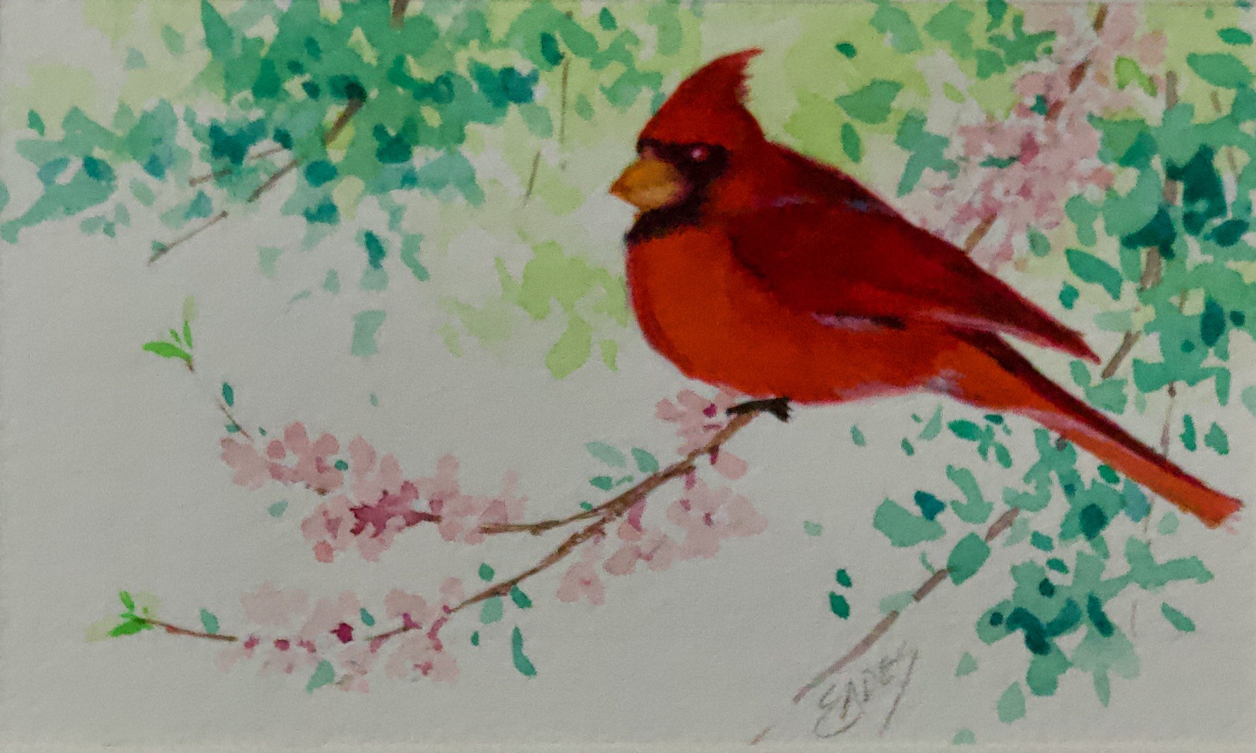Beautiful Cardinals... always a pleasure to paint. This one is enjoying a lovely spring day.