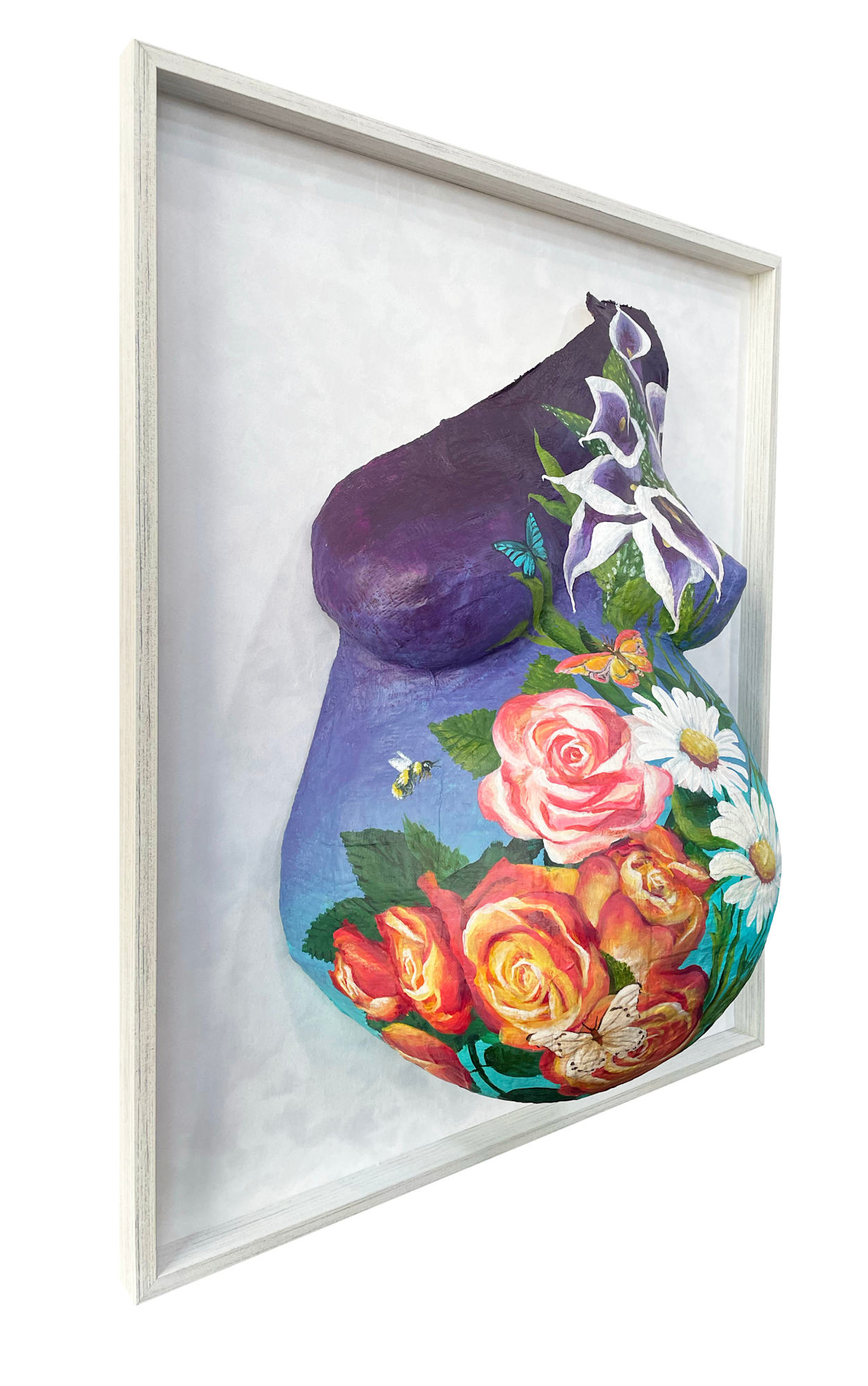 This is a paper mache cast of my client’s pregnant belly. The client had trouble conceiving for years and wanted a memorial of their journey. Through various methods of trying to get pregnant, her and her husband finally got what they dreamed of- TWIN GIRLS! The girls were miracle babies and their story brings me to tears.