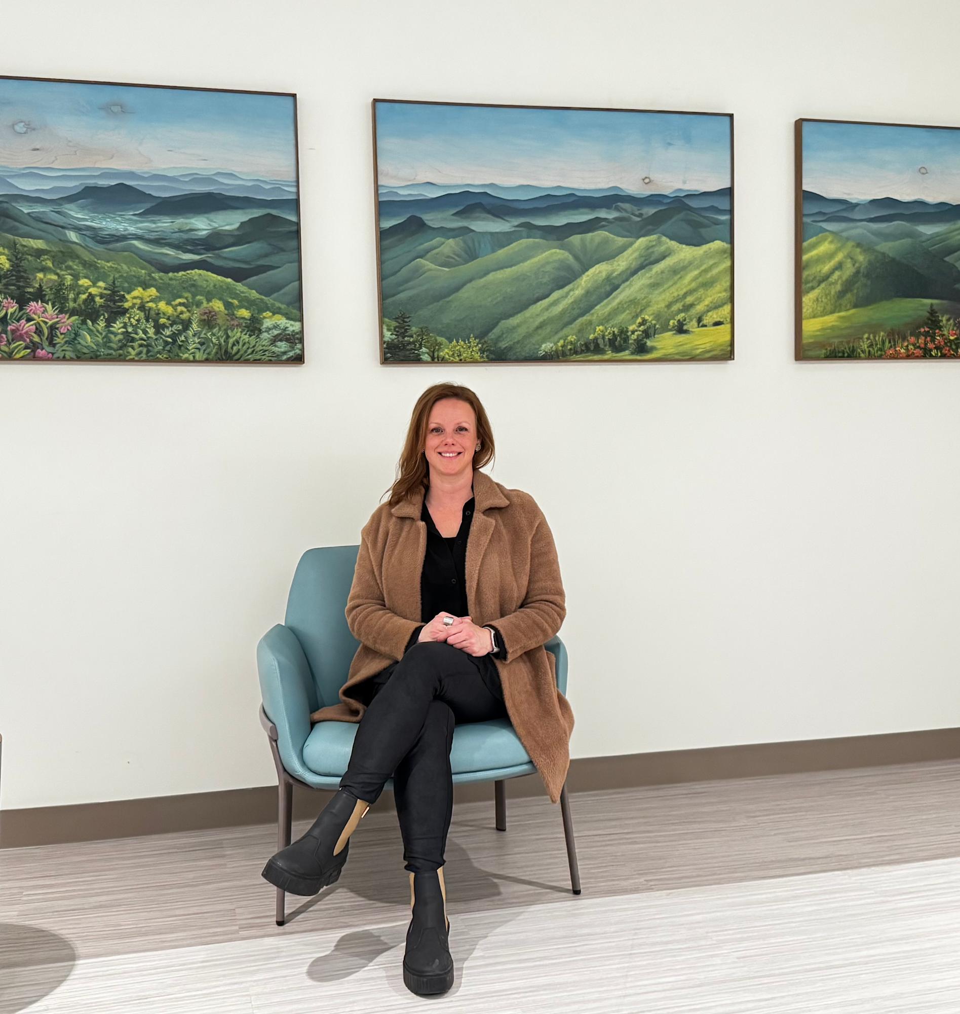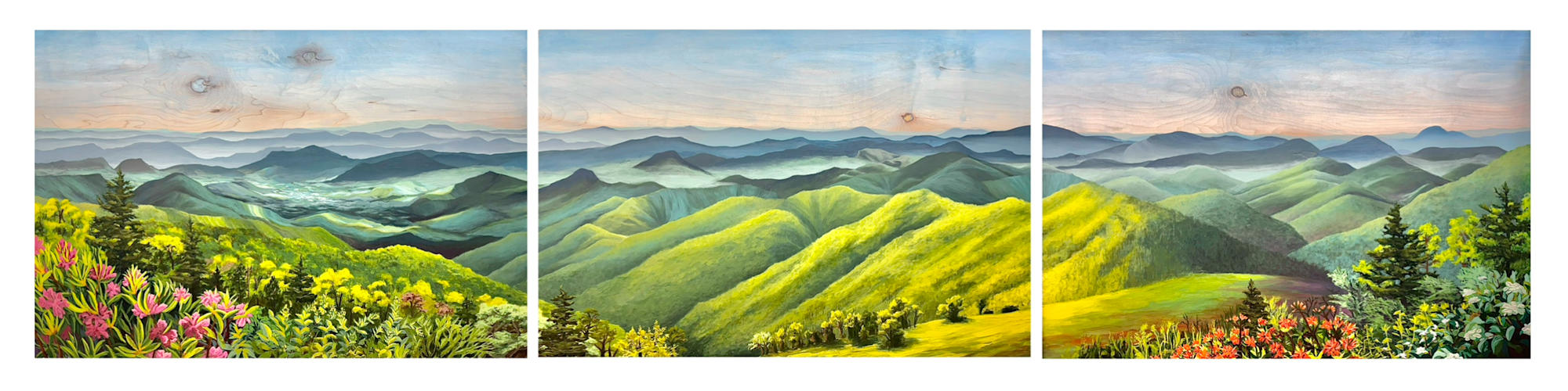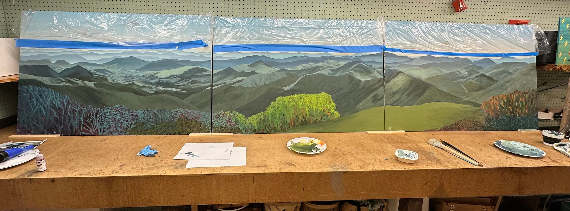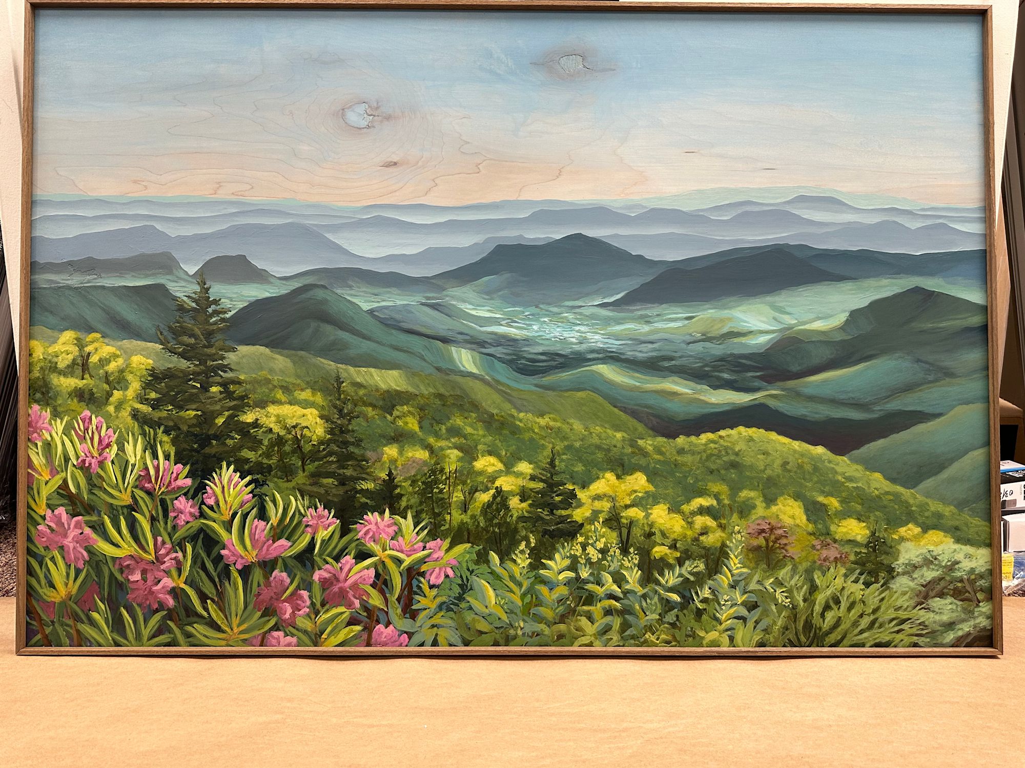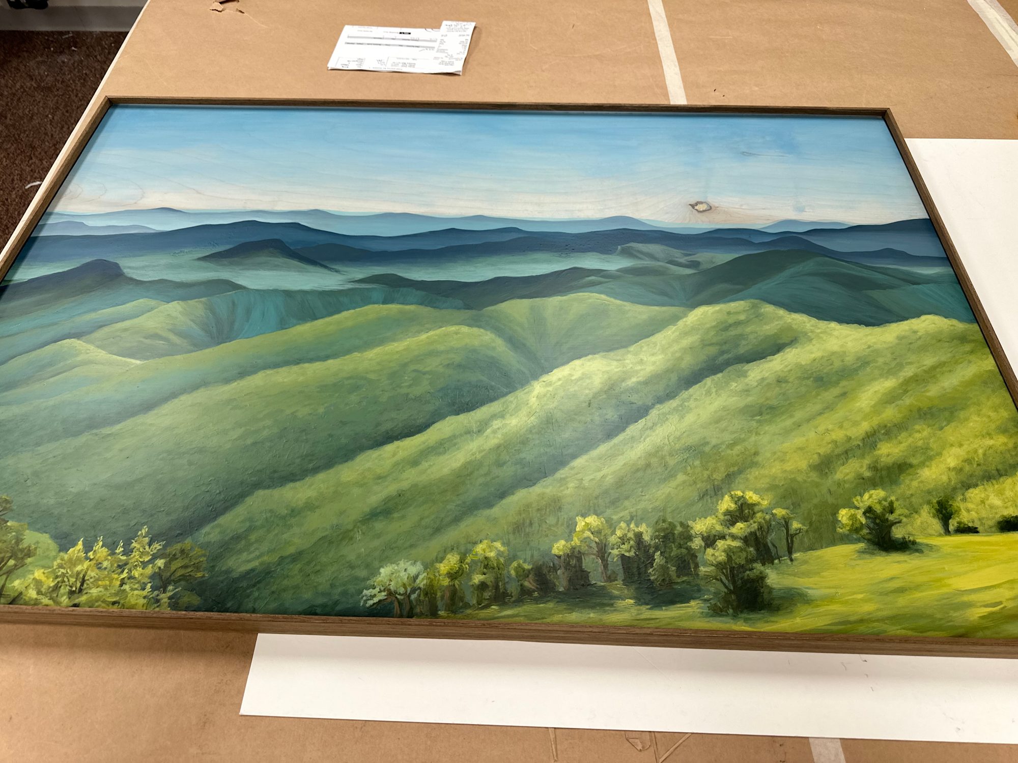 Art is powerful! The goal of the client was for this commission to encourage hospital patients located on the heart failure floor to heal. The hospital wanted art that would fit the aesthetic, colors and style of the brand new, award-winning patient tower, as well as relate to the local North Georgia scenery there. I made the trek to the top of Brasstown Bald for reference photos to paint from. I brought my photos home and pieced them together to create this panorama painting. This special place is the highest elevation point in Georgia, and when someone is waiting for news about a loved one, they want to feel at peace. This painting is filled with hope and light and speaks to reflecting on the journey of life.