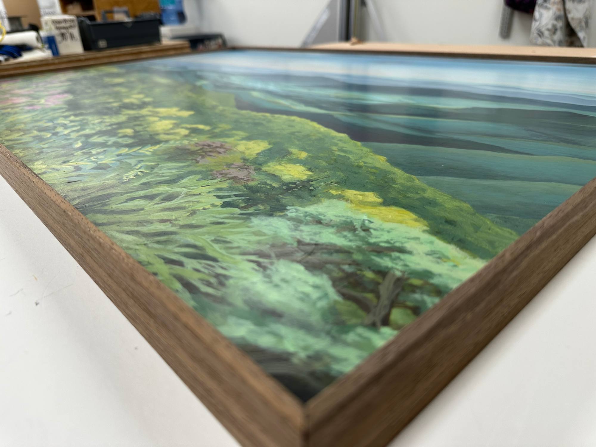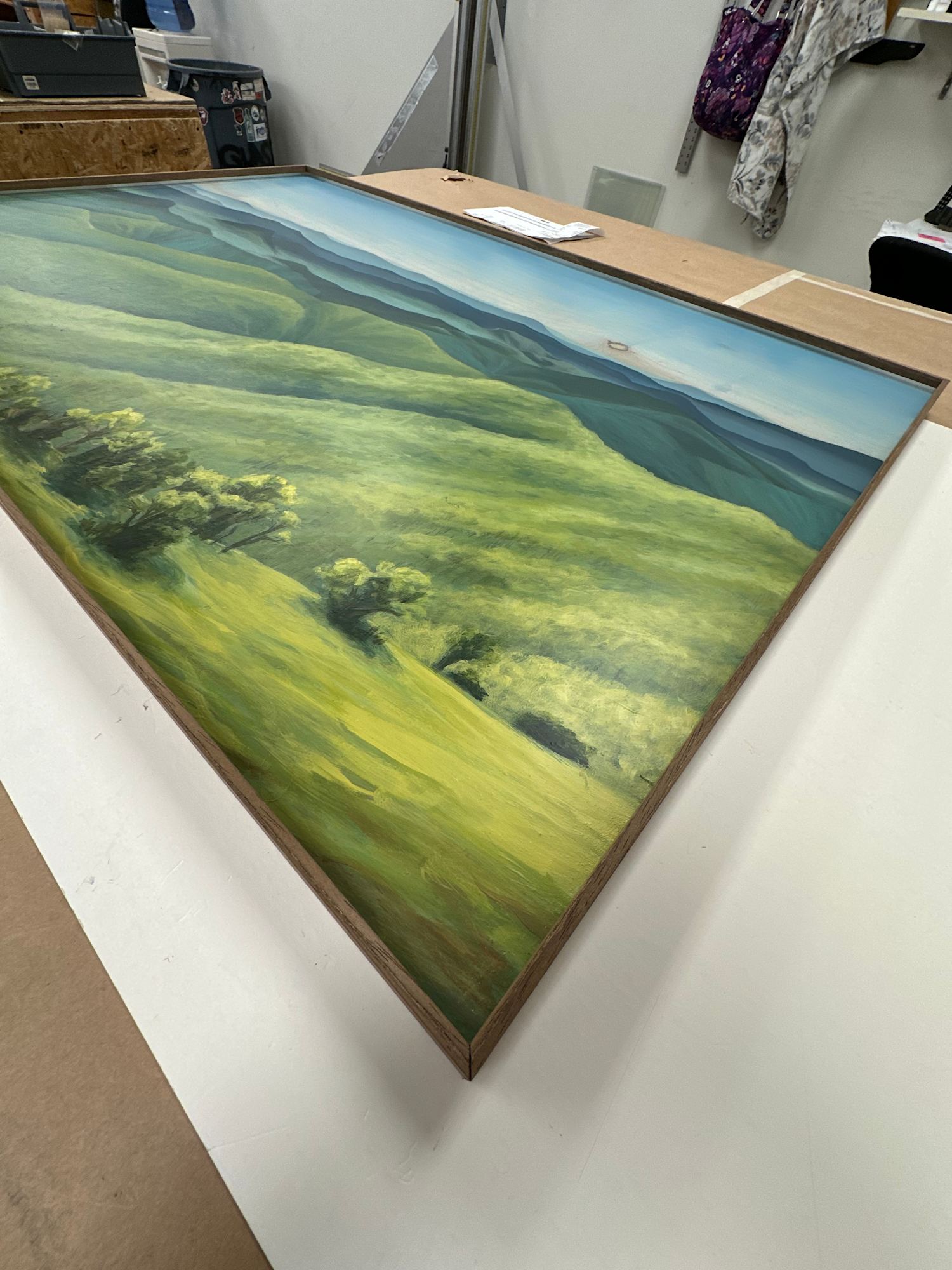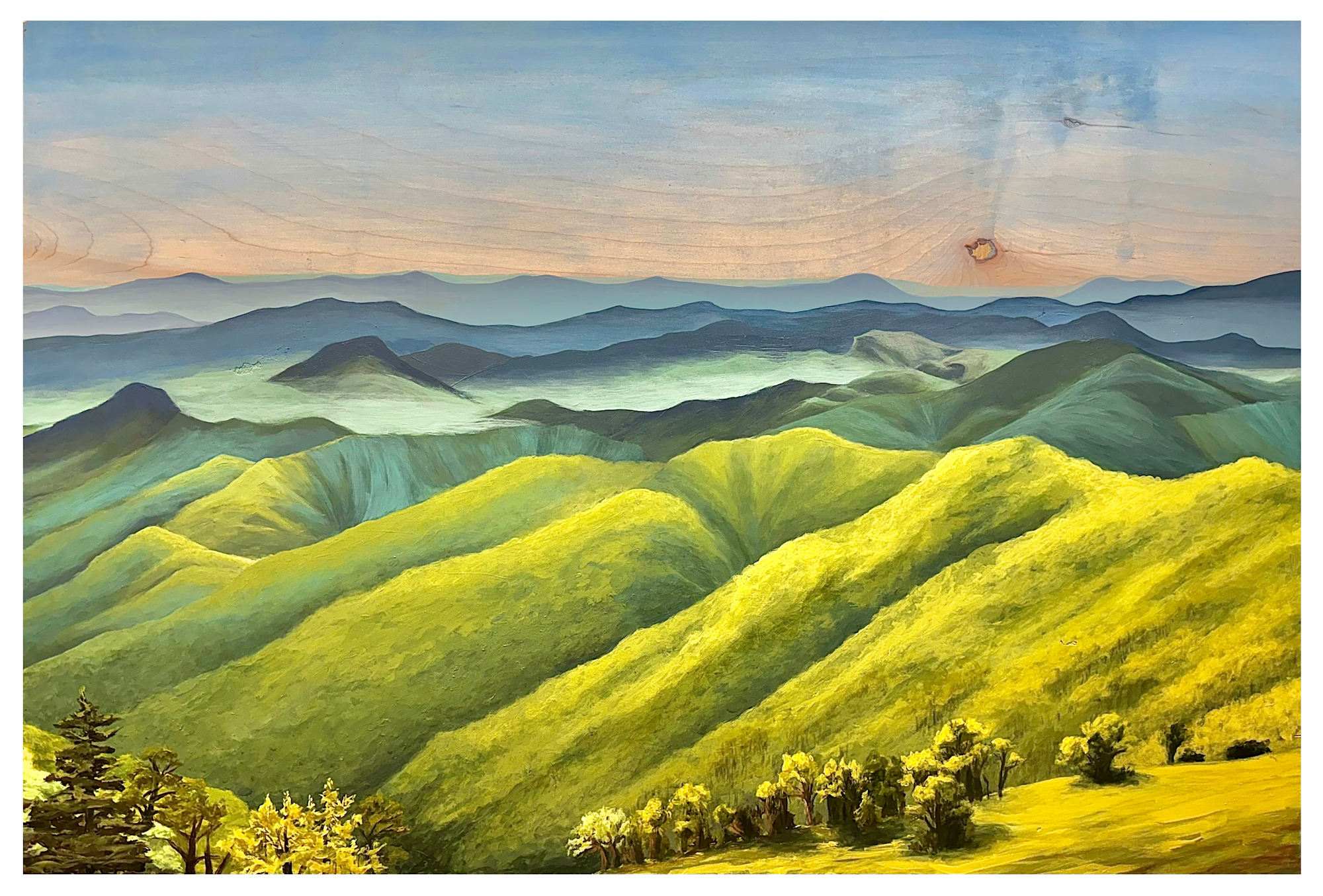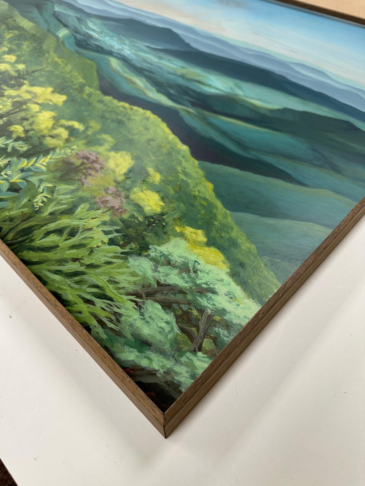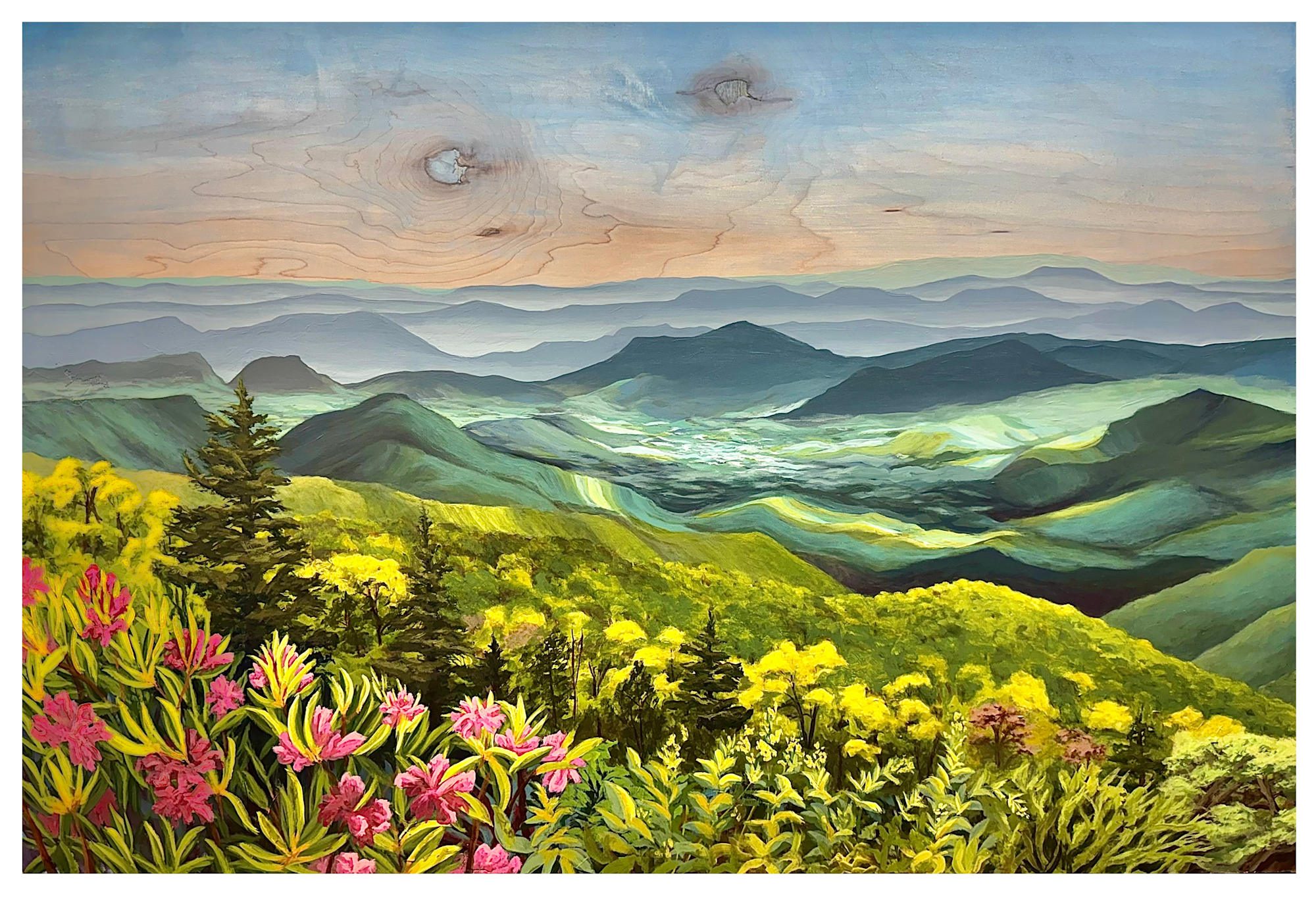 Art is powerful! The goal of the client was for this commission to encourage hospital patients located on the heart failure floor to heal. The hospital wanted art that would fit the aesthetic, colors and style of the brand new, award-winning patient tower, as well as relate to the local North Georgia scenery there. I made the trek to the top of Brasstown Bald for reference photos to paint from. I brought my photos home and pieced them together to create this panorama painting. This special place is the highest elevation point in Georgia, and when someone is waiting for news about a loved one, they want to feel at peace. This painting is filled with hope and light and speaks to reflecting on the journey of life.