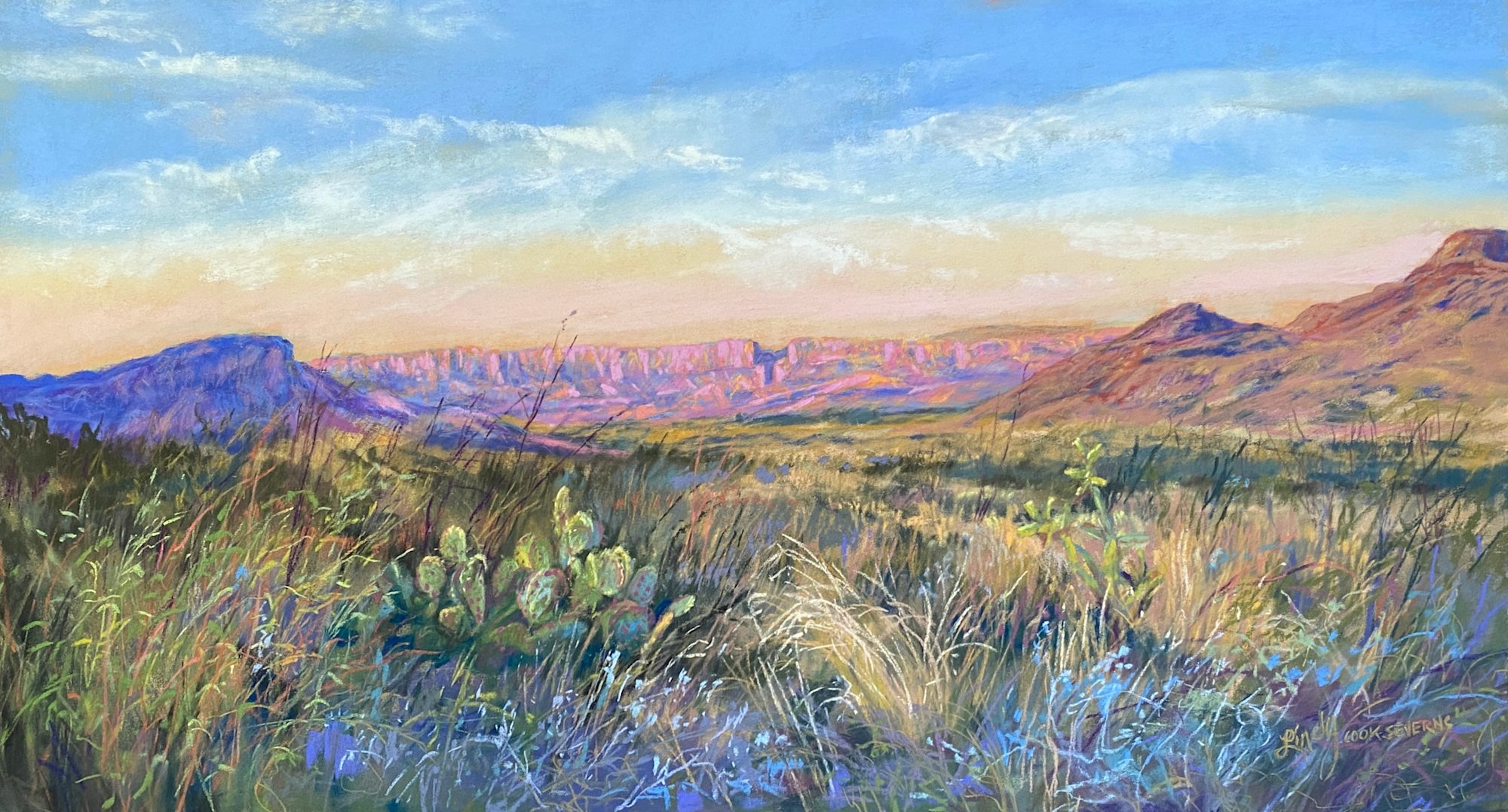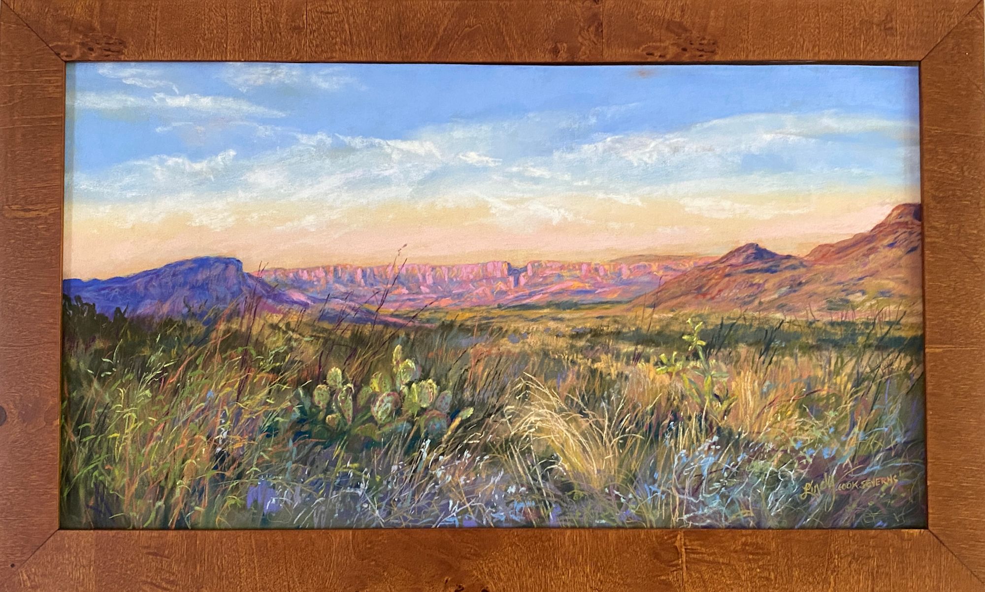 "And the Day Begins" is my heartfelt tribute to the breathtaking sunrises of Big Bend National Park. As I stood there, surrounded by the prickly pear and the vibrant, gently waving grasses of the Chihuahuan Desert, I felt equally rooted to the land. The distant Sierra del Carmen range stands majestically above the Rio Grande, its luminous peaks bathed in the soft light of dawn. This pastel landscape captures that fleeting moment when night surrenders to day, inviting you to experience serenity. Sunrise brings a freshly glowing face to the darkly silent desert-- what sights and sounds will this day bring?