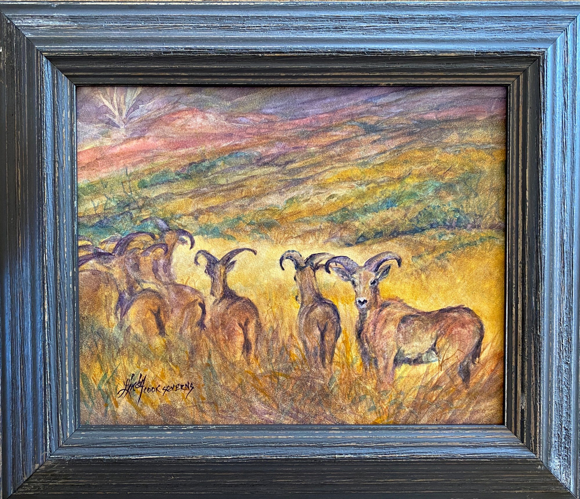 Aoudads aren't native to West Texas, but these exotics got here as soon as they could, then spread across the ranch country of the Davis Mountains. They thrive in our grasslands, with plenty of room to roam. Fences don't phase them. You can go months without spotting one, perhaps because their red gold coats blend in perfectly with native grasses and oak. Then, suddenly you'll come up on a herd moving across the ocean of grass in waves of hooves and horns, each animal in the herd almost indistinguishable from another.