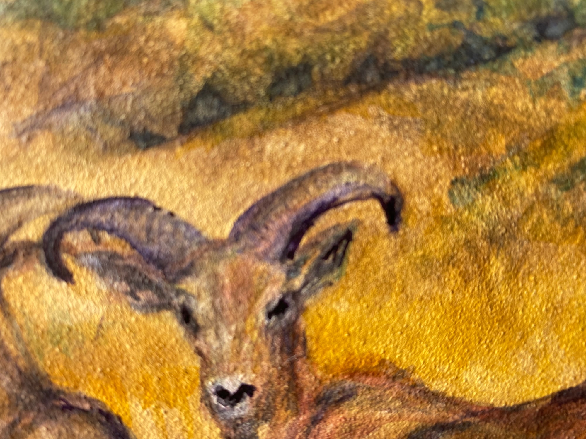 This watercolor is on a museum grade board coated with several layers of matte archival varnish. It is a painted jewel that needs no glass to protect it. Set it on a table easel or shelf, or hang it on your wall.