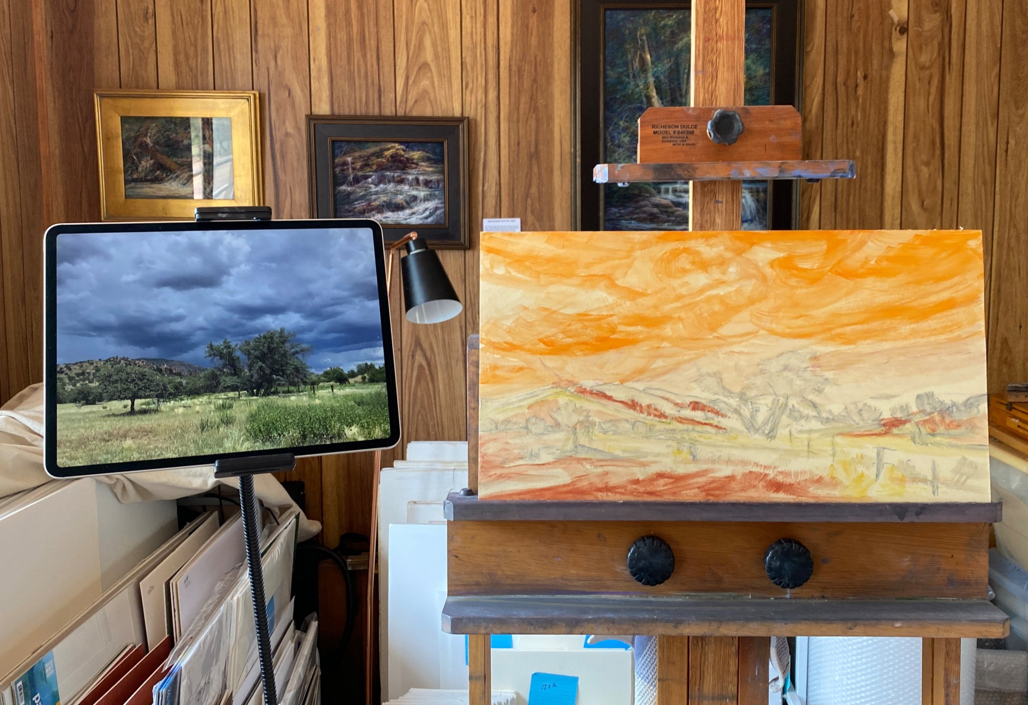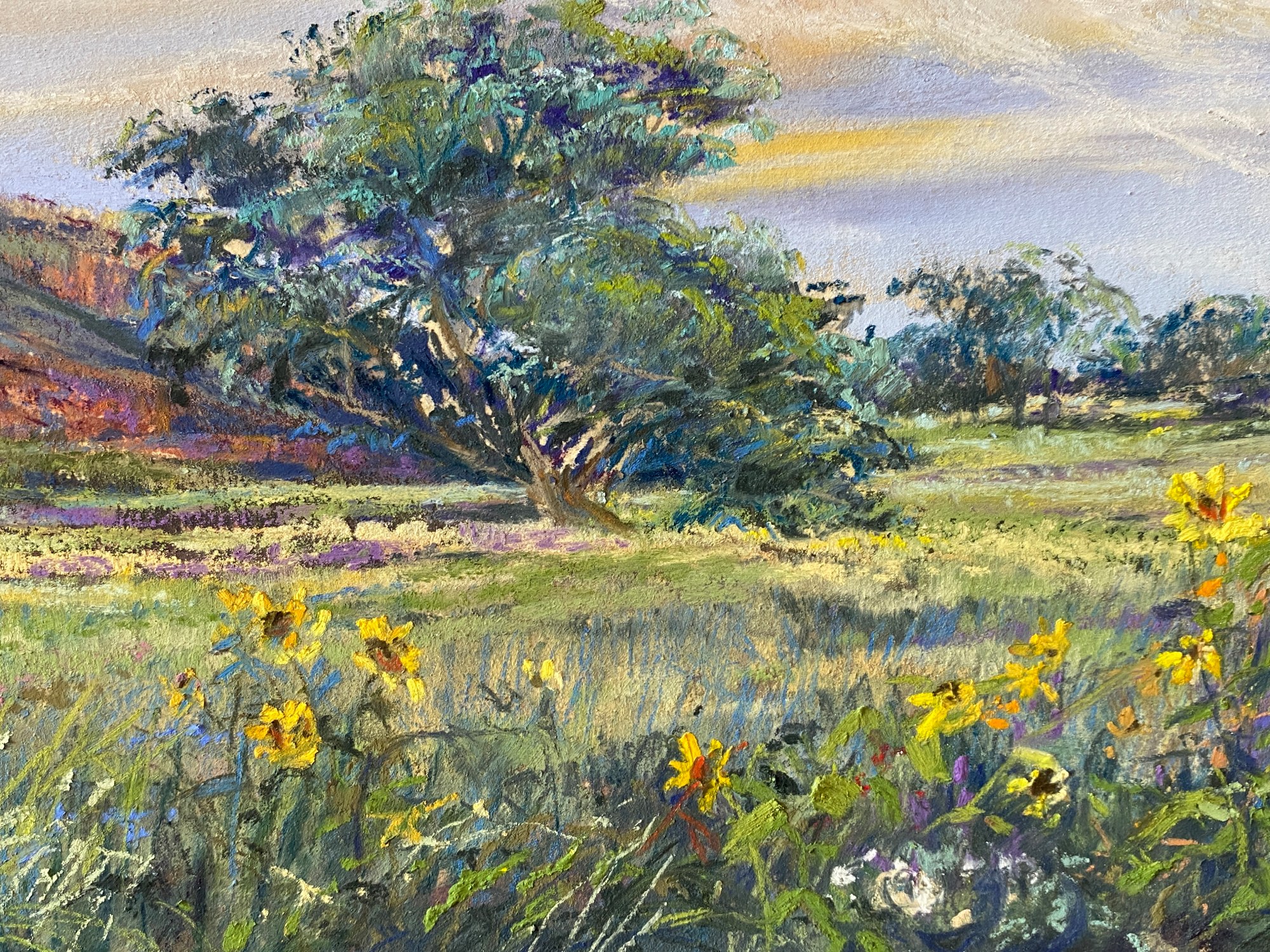 This summer pasture shimmers with life as monsoon rains sweep the high desert. I paint what I know, and I was so delighted to be around to see these high desert pastures go from dessicated browns to tall and green in a matter of days after our first measurable rain of the year. Nature seems to know what she's doing, and here in the mountains, with our short growing season, plants flower and go to seed and grass shoots up almost overnight.