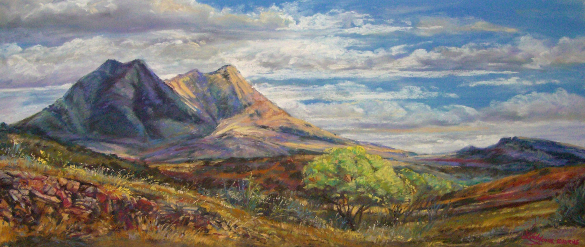 Volcanic siblings, Twin Peaks outside Alpine, Texas take on separate personalities to become fraternal twins when clouds filter light and shadow across each mountain.