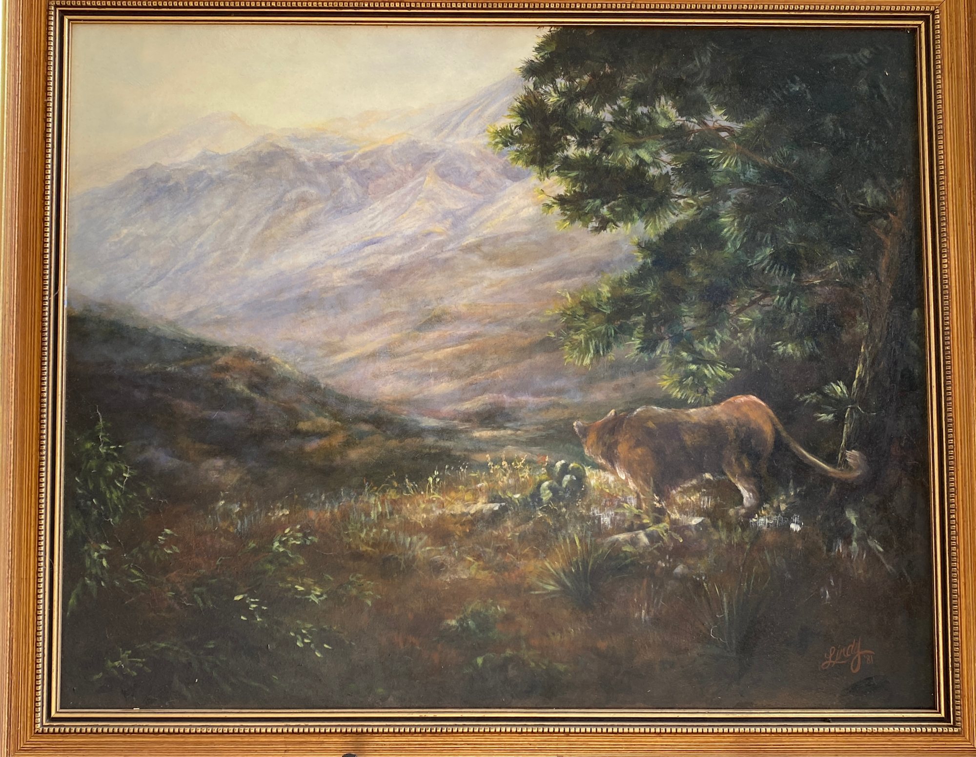 There is beauty in this landscape, but you also feel connected to the solitary cougar, muscles rippling with grace and strength. I filtered light through the big pine to connect it to the cat and create a sense of intimacy, as if you are sharing a moment with this magnificent creature. This was my first painting in which I explored these things. I thought a lot as I painted.