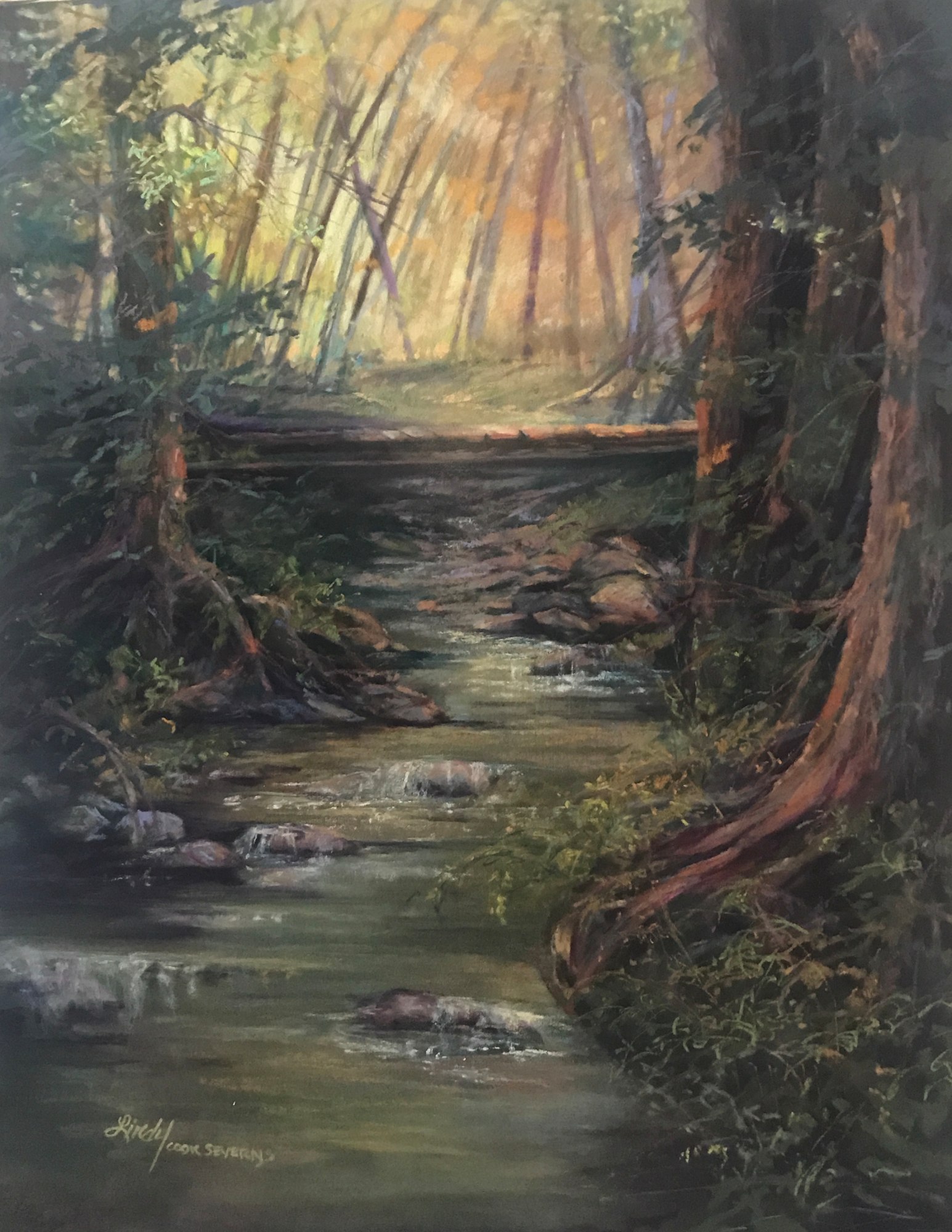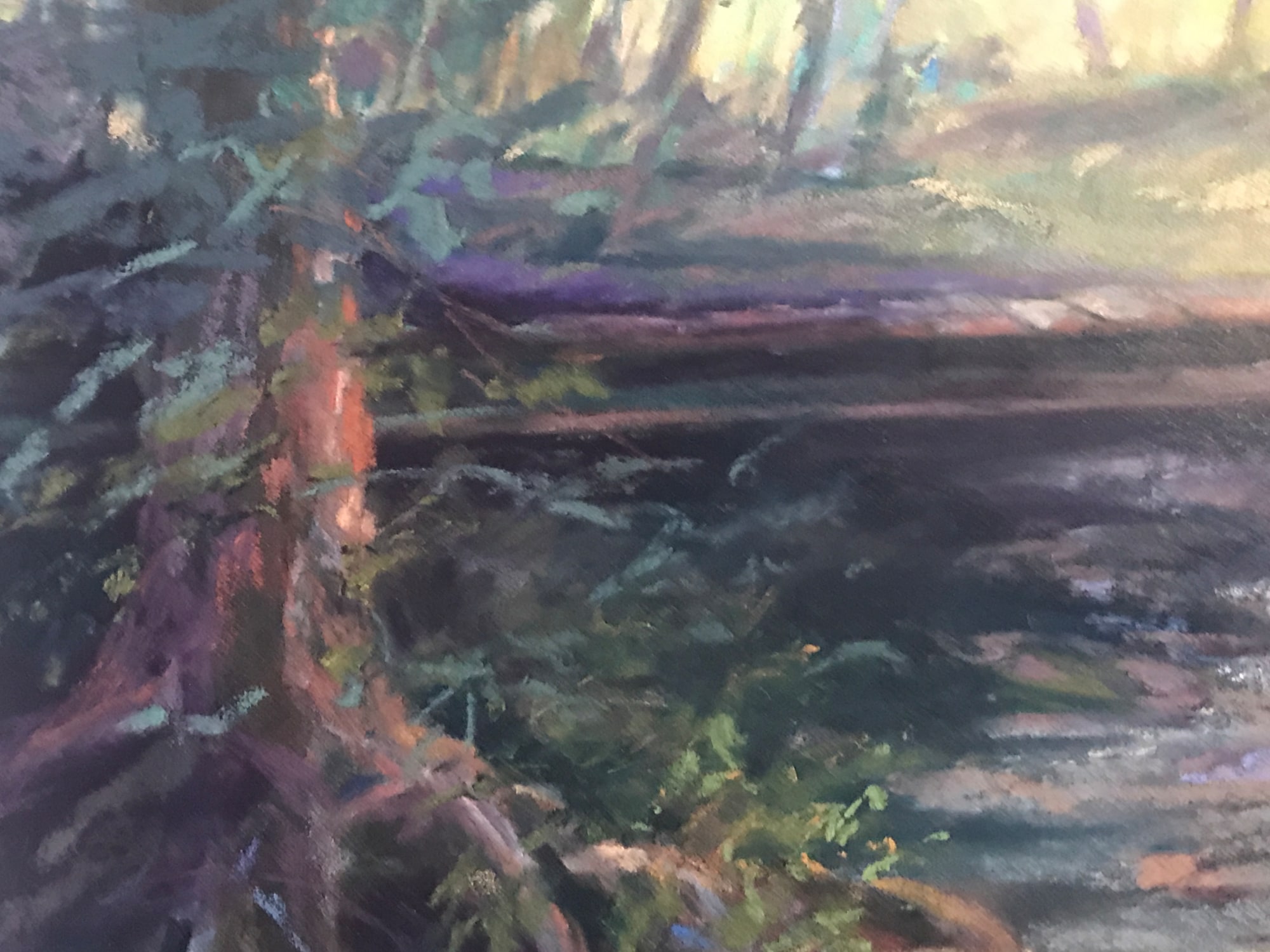 Softly filtered light shines through evergreens and aspen to add gold to Taos Creek before the mountains steal the sun for another summer nightfall. Clear water gurgles and whispers across pebbles rounded by snowmelt earlier in the year, and roots cling to the bank in preparation for the next spring's floodwaters. But for now, all is tranquil.