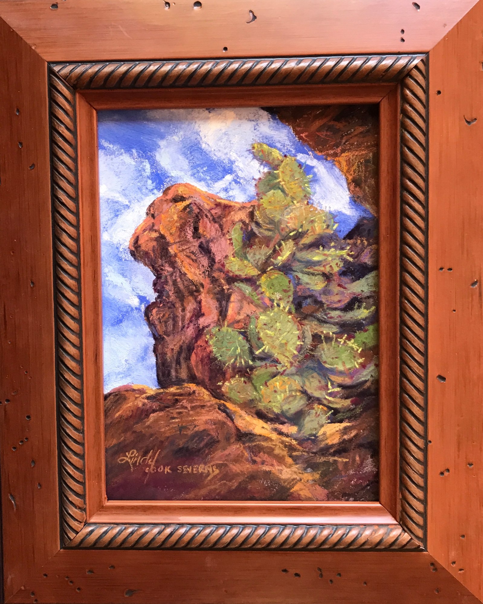 This is a painted pastel study, a fresh, energetic artwork that captures the patterns of deep, dramatic color of the desert southwest without the distraction of too many details. These specific rocks line the Chihuahuan Desert outside Big Bend National Park, but this small painting will bring life and color to your wall, wherever you are.