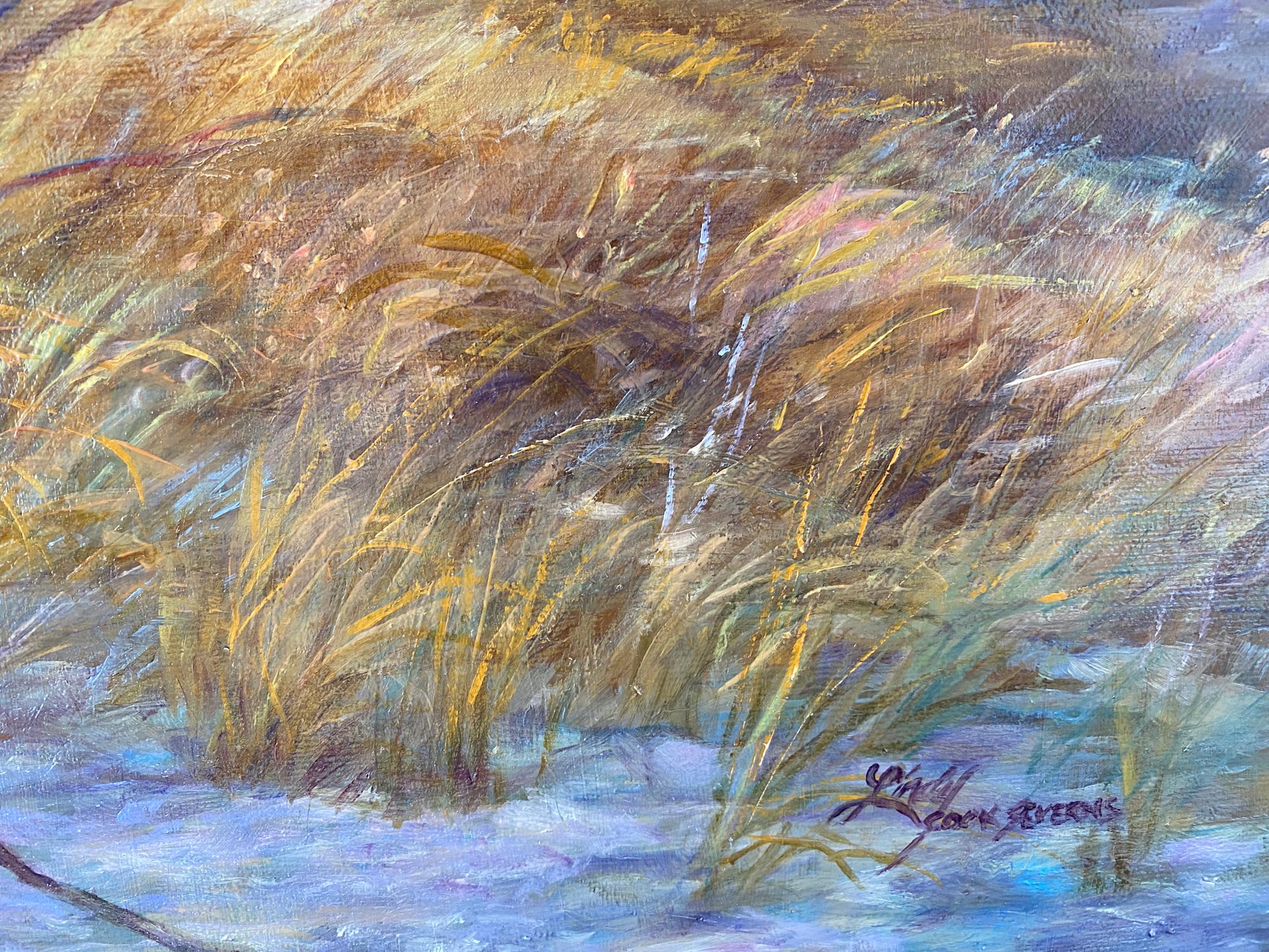 This is my second take on this remarkable view, one I photographed a couple of decades ago, then painted in oils on a small, rough canvas. That first painting, "Ocotillo at San Jacinto Peak" was unpolished, a simple oil sketch, yet it remains one of my all time best sellers as a small print. Yet I've seen it so many times, I began wishing I'd developed it further, refined the foreground, played more with color in the stems and flowers. I wished I'd let grass move, and clouds form. I wished I'd painted it on a larger canvas, with space to tell more of the ocotillo's lovely story, with more space for the plant to dance with the sky.