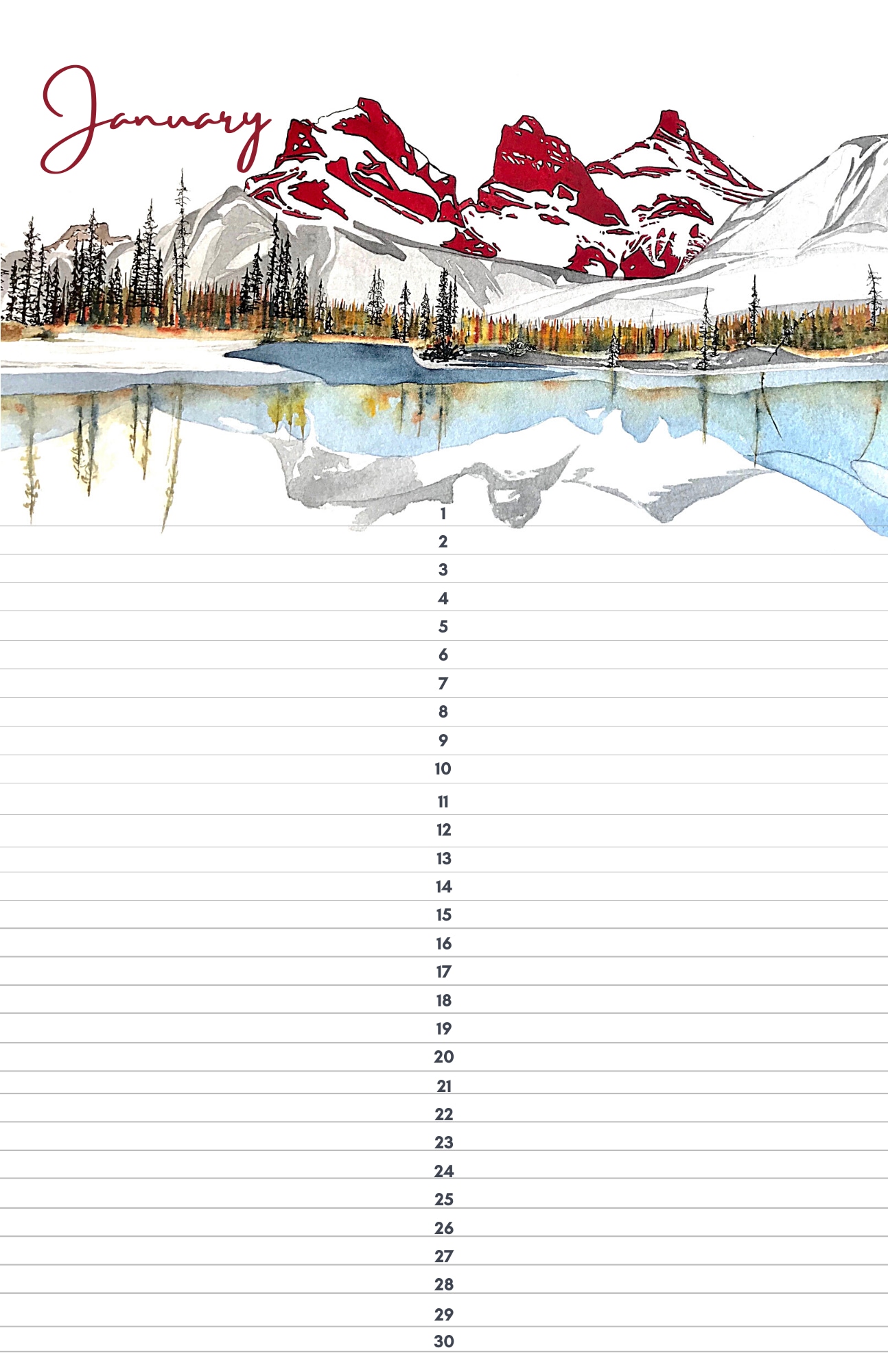 Images in this Calendar are taken out of the library of images of Linnea Martina's original Watercolours!