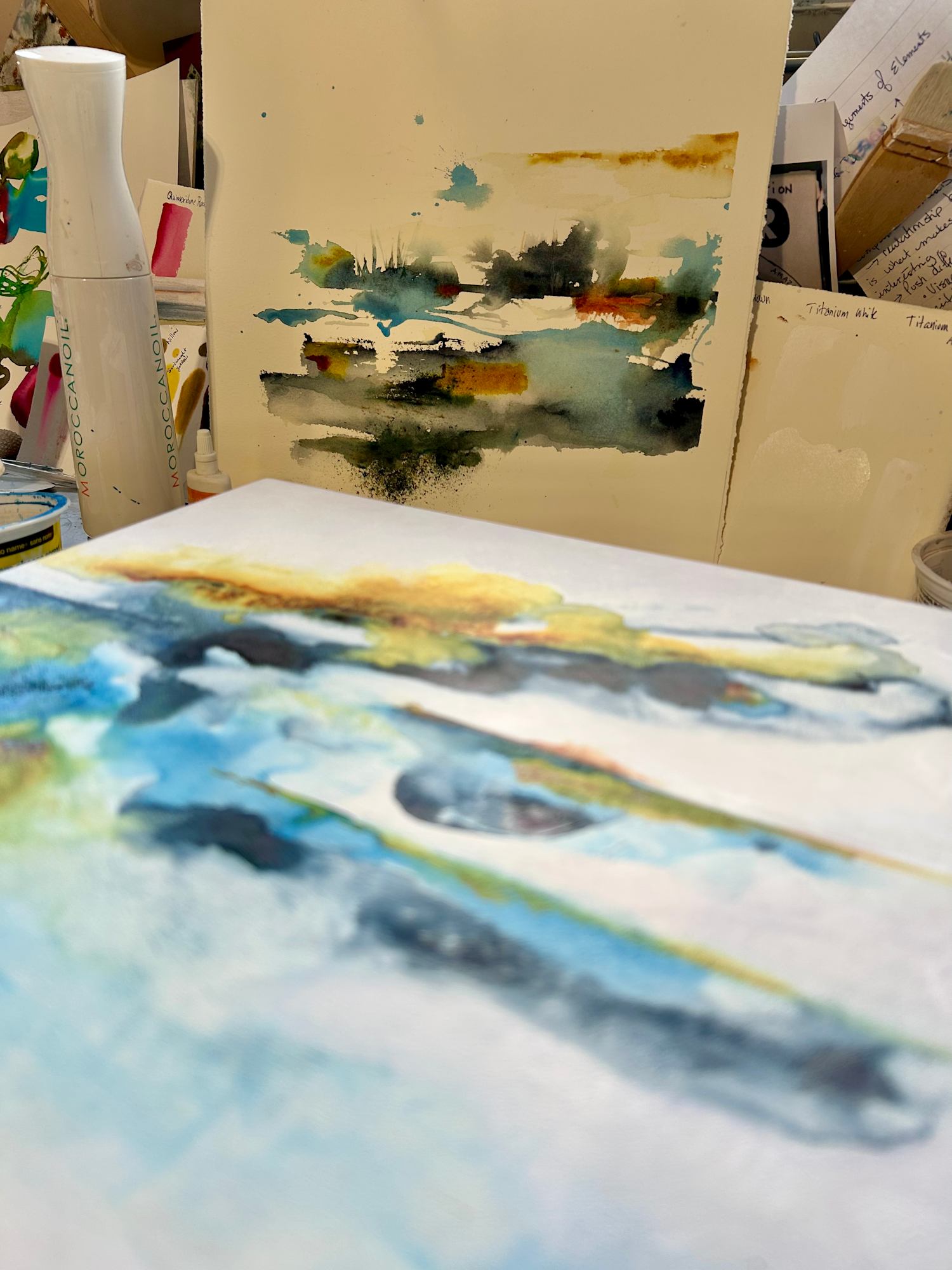 Seeking to reframe watercolour within the context of contemporary art, challenging preconceived notions of what this medium can achieve." I don’t chase the perfect mark. Instead, I let the painting breathe, revealing its own history through translucent layers, revealing the history of the painting..... I like to refer to artwork painted in contemporary Watercolour and Inks as “living works of art.” Translating places into pigments, into works of art that hold a place within them a connection that resonates with the viewer! Controlled pigments only to a glimpse of premeditation, ending in energy transformation! To achieve this, my work is about the movement, manipulation and responding to colour transformations and the pigment itself. "Watercolour isn’t just a medium—it’s alive. The pigments shift, transform, and respond, shaping themselves into something unexpected. Ultimately, my work seeks to reframe watercolour within the context of contemporary art, challenging preconceived notions of what this medium can achieve." Discover how I’m reframing watercolour in contemporary art!