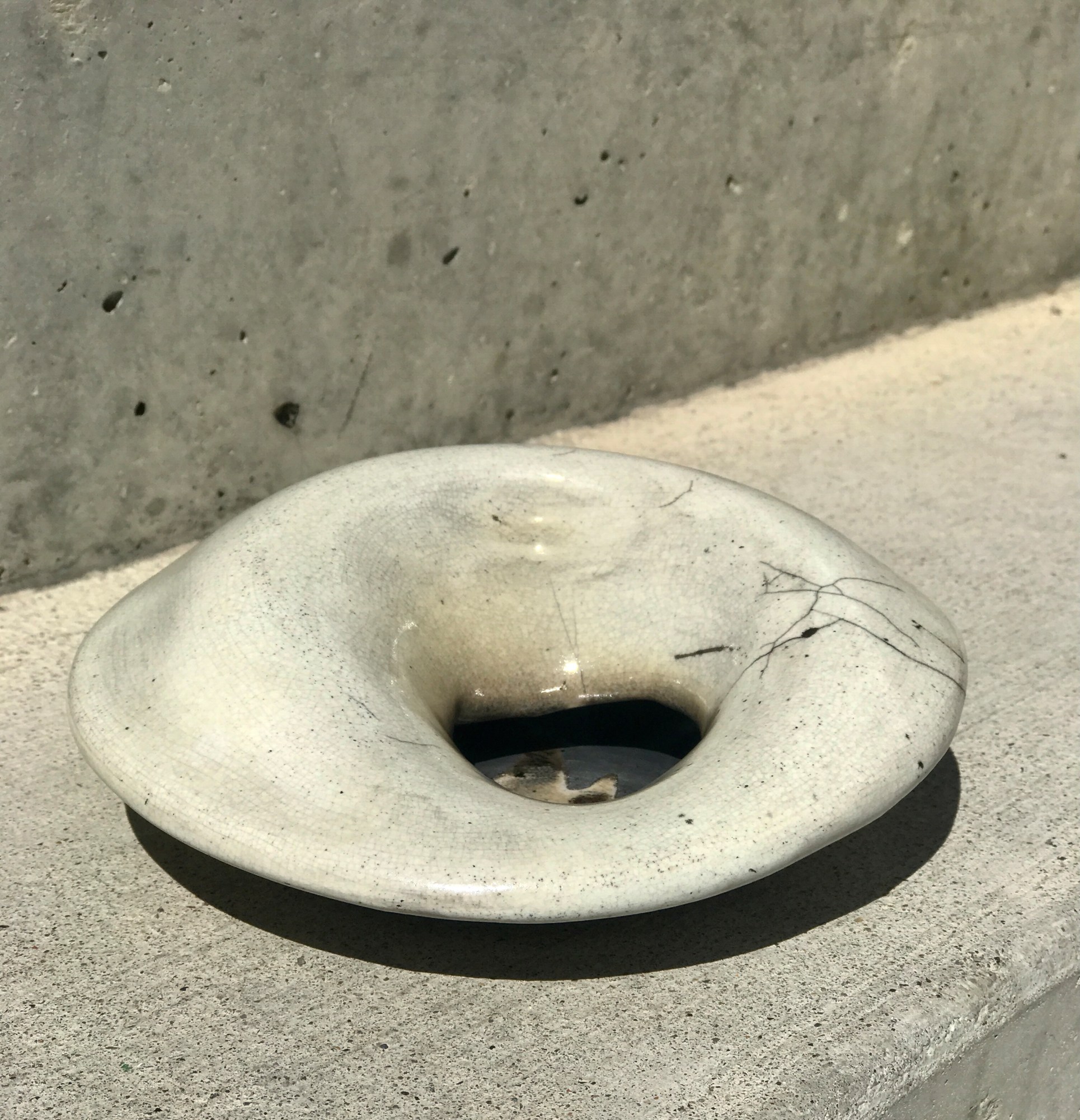 RAKU- Firing | This consists of a hourly process where the pottery is heated in an outside kilm. When to temp, then taken out and oxidizes with the air to create a crackle effect on the pottery. Different natural components (horse hair/feathers/water) can be scored on the surface of the pottery to create more details. The results being only under control to a certain extent and then its all up to the pottery gods!