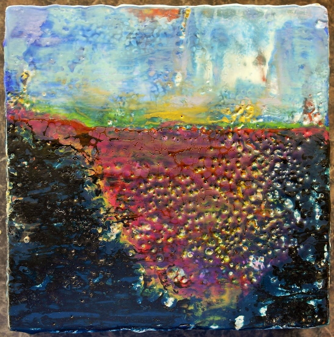 Linnea Hannigan investigates the divide between representation and abstraction using the lush formal properties of encaustic paint. The reaction of wax with paint offers an organic dimensional depiction of the landscape subject.