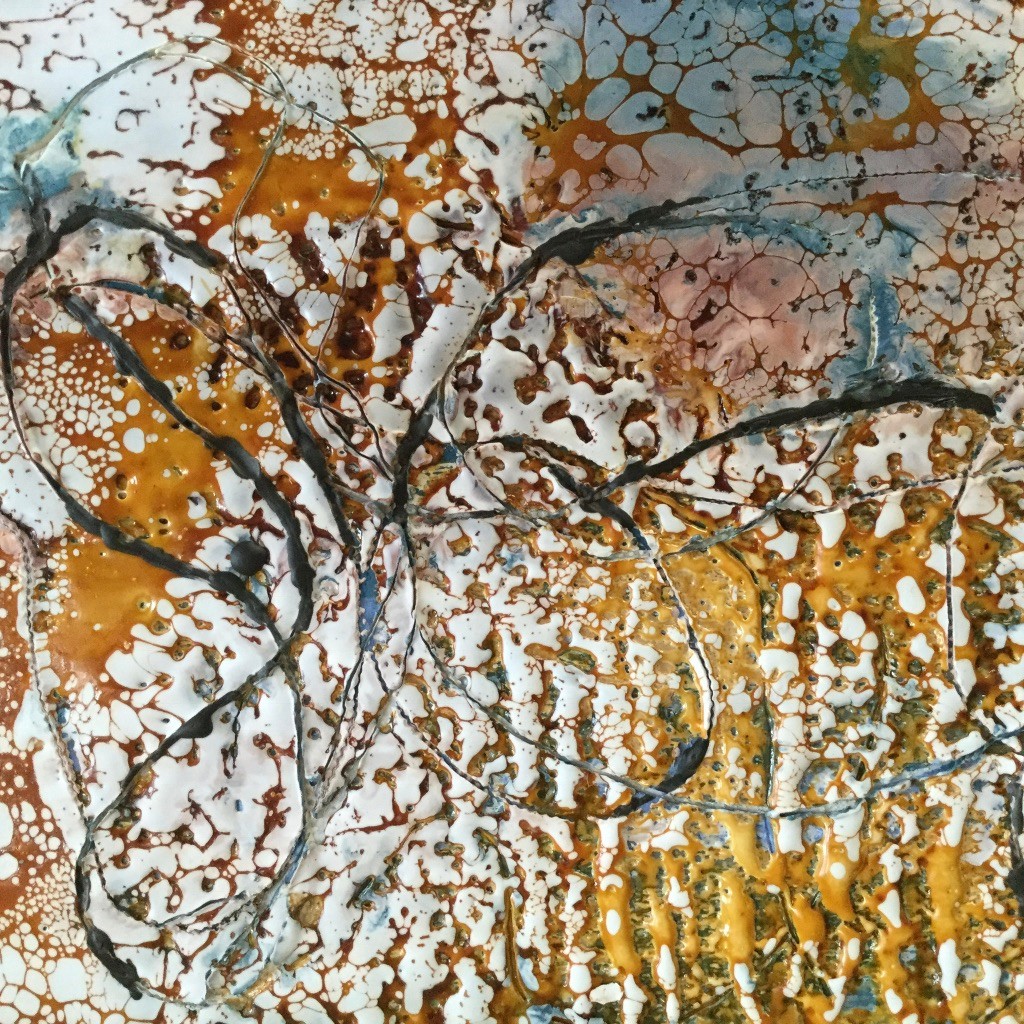 My work consists of, but not all containing; found objects, image transfers, using the attributes of the wax layer upon layer, the inscribing and carving of the wax itself. The play on depth with slight transitions of colours add complexity and depth within the surface of my paintings, creating a translucent history, an illusion of deep perspective; stirring a memory or an emotion for the viewer.