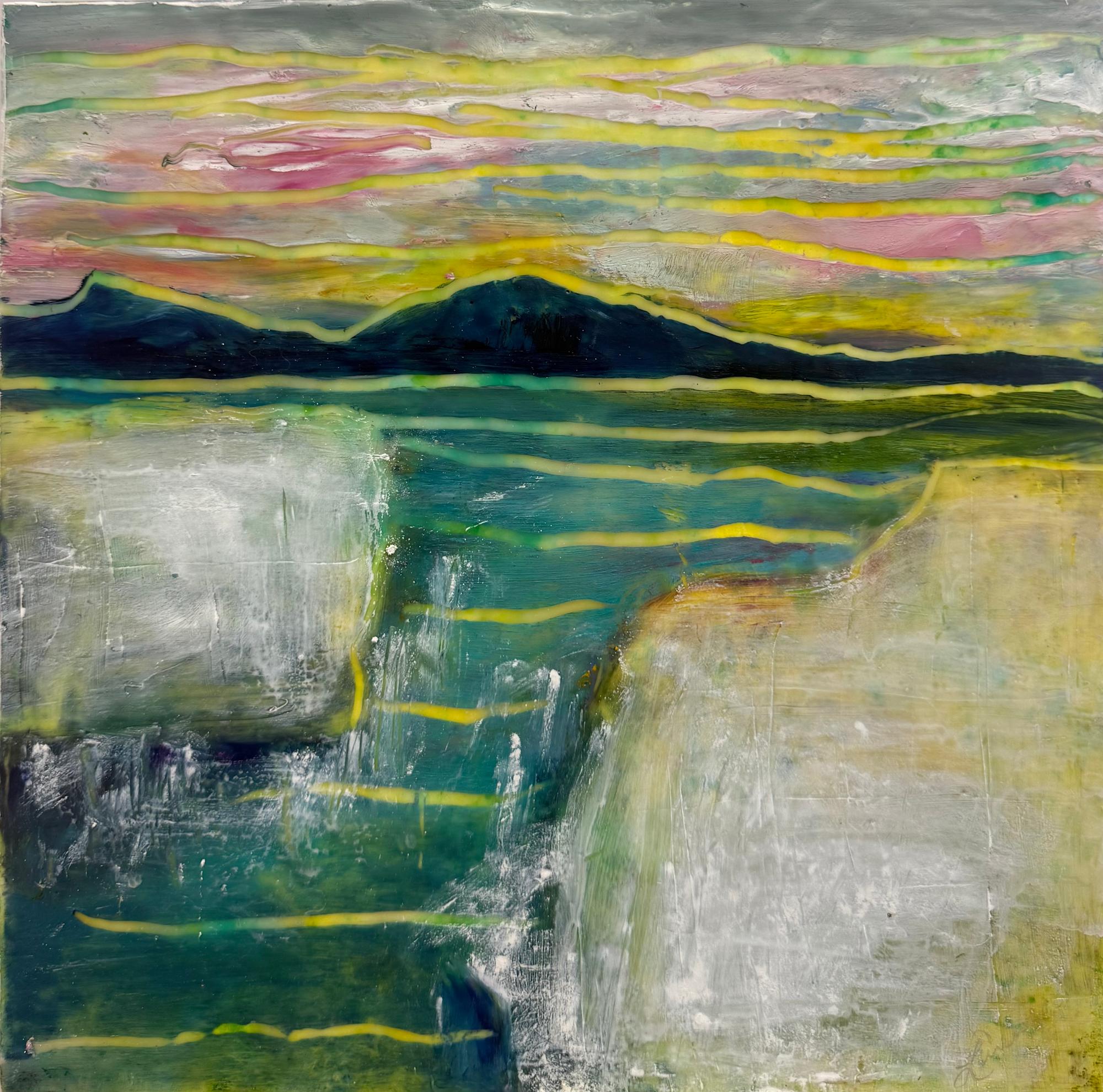 Luminous bands of sky sweep over shifting ice and water, capturing a landscape in transformation.
