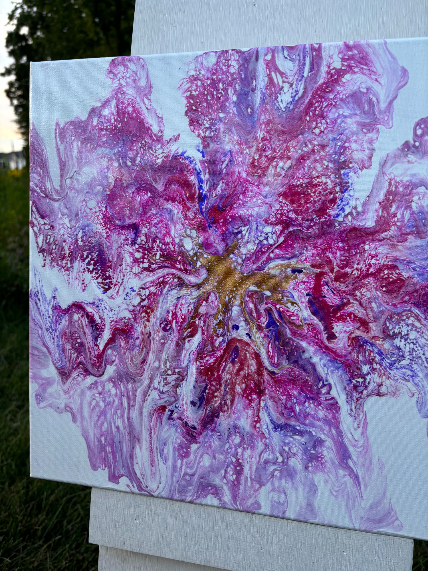 The process of creation allows the paint to move and settle in ways that form intricate, nature-inspired patterns—making every painting unique and impossible to replicate.