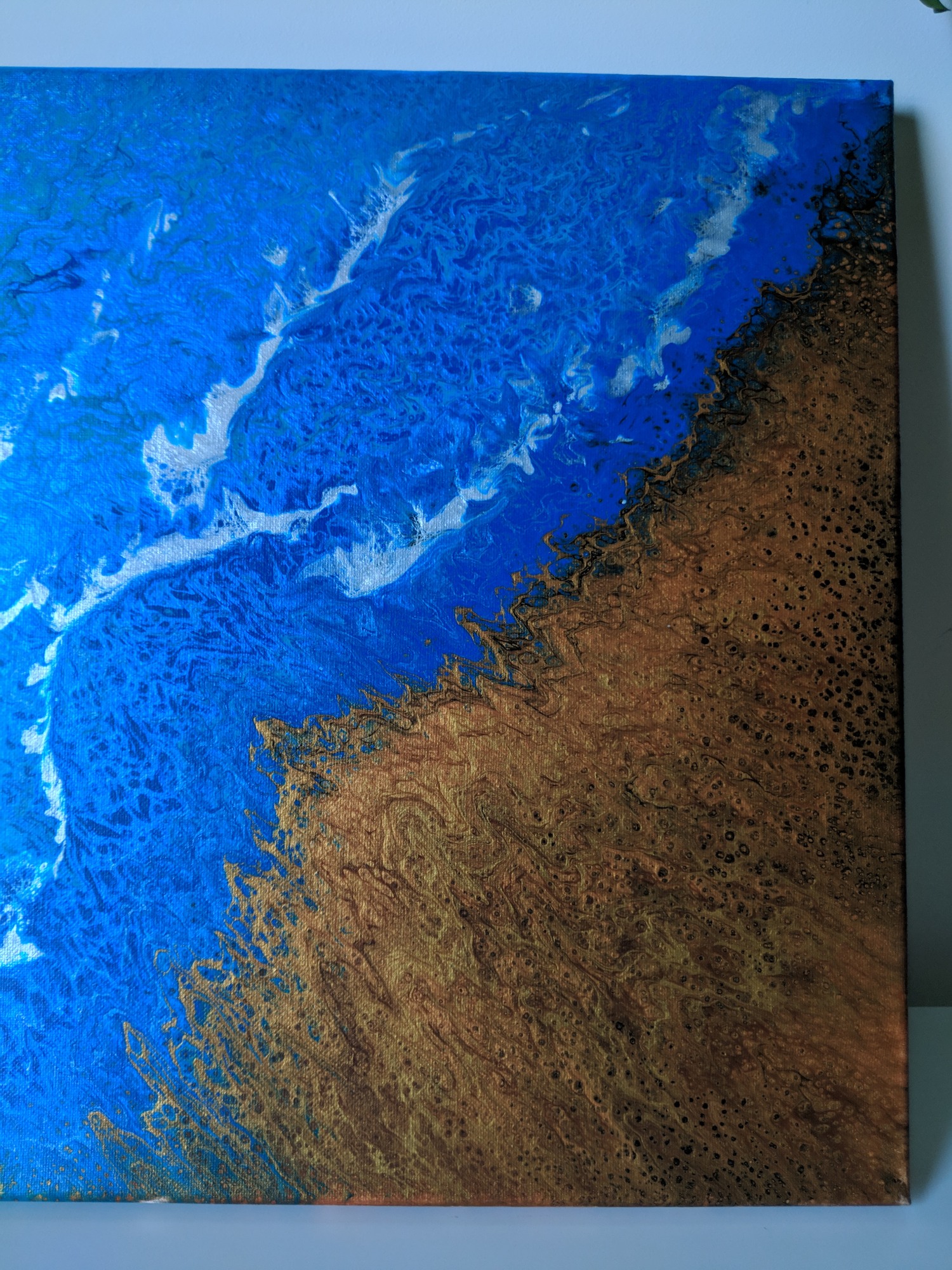 Due to the process and movement of the paint as it dries, you'll find very interesting patterns as you look throughout the painting.