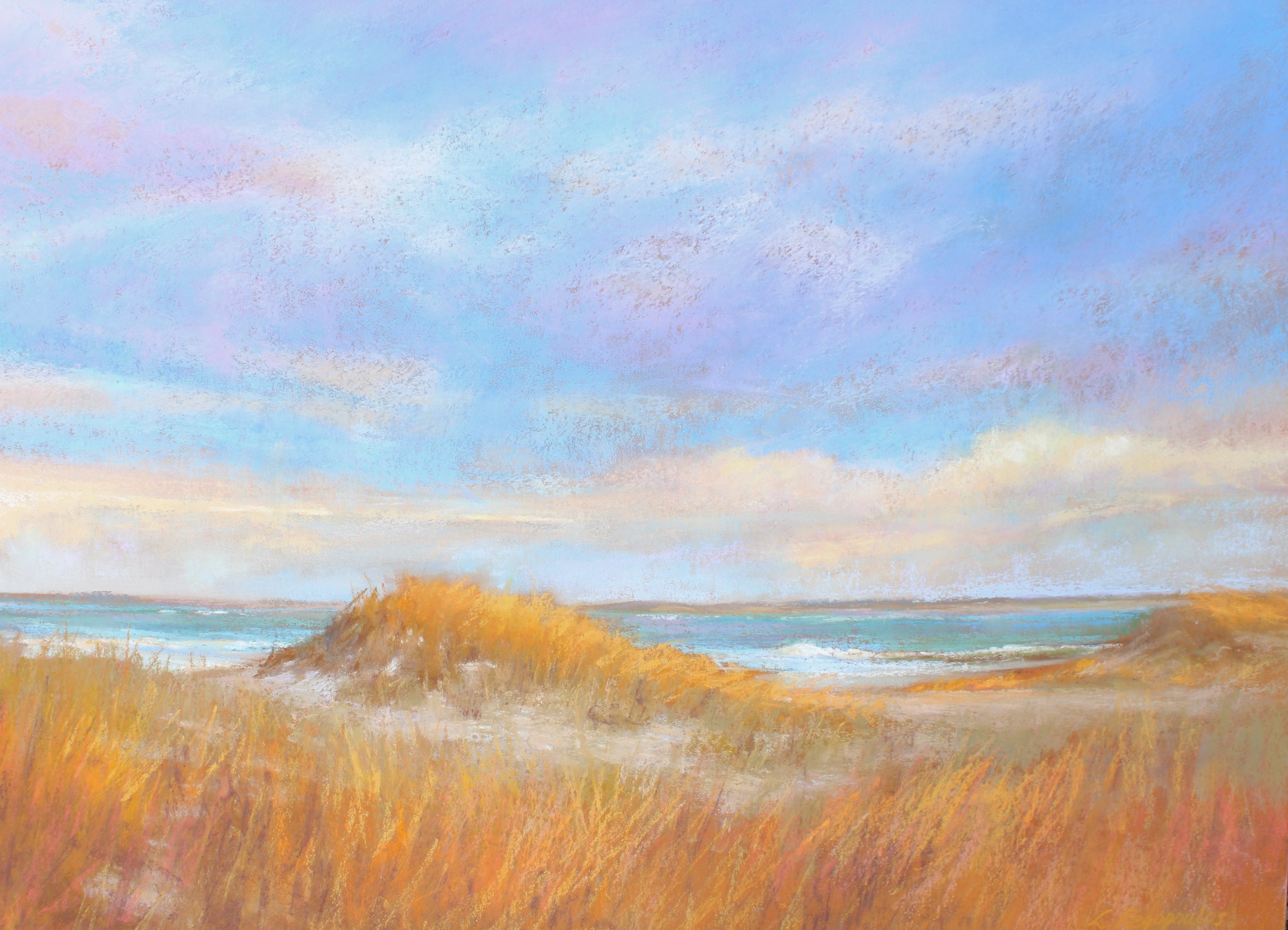 Inspired by a plein air painting day at Plum Island, past the parking lot for Hellcat Trail and down the dirt road on the left near the lookout tower. It was that magical time of the day when the sun casts a glow on the dune grasses.