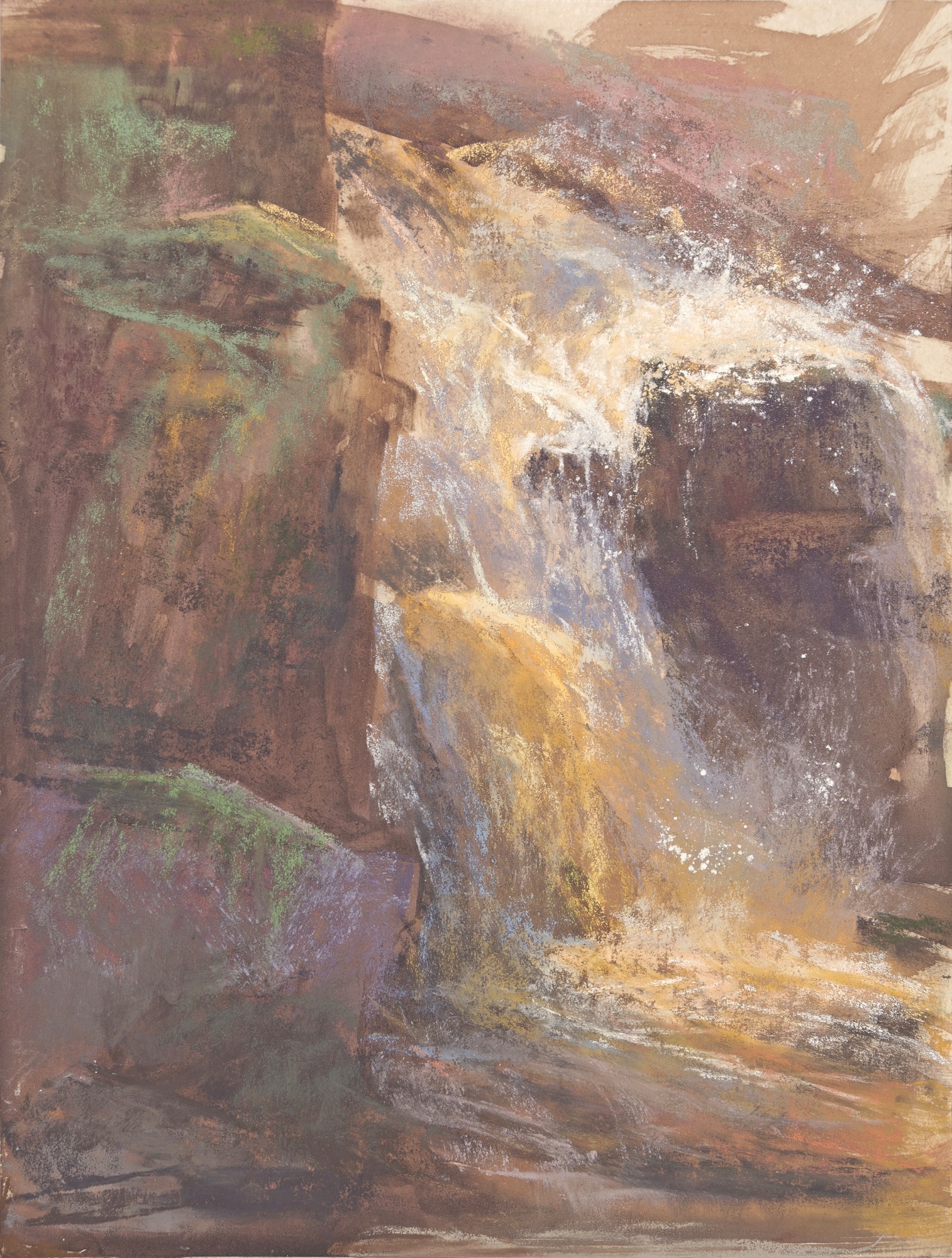 This piece was painted en plein air at St. Regis Falls, Adirondacks and completed on site. I was lucky to be able to have an up-close view of this spectacular waterfall in the beautiful morning light. This painting was all about the color and spectacular light effect at the falls. There was so much energy and movement which I was able to experience first hand.