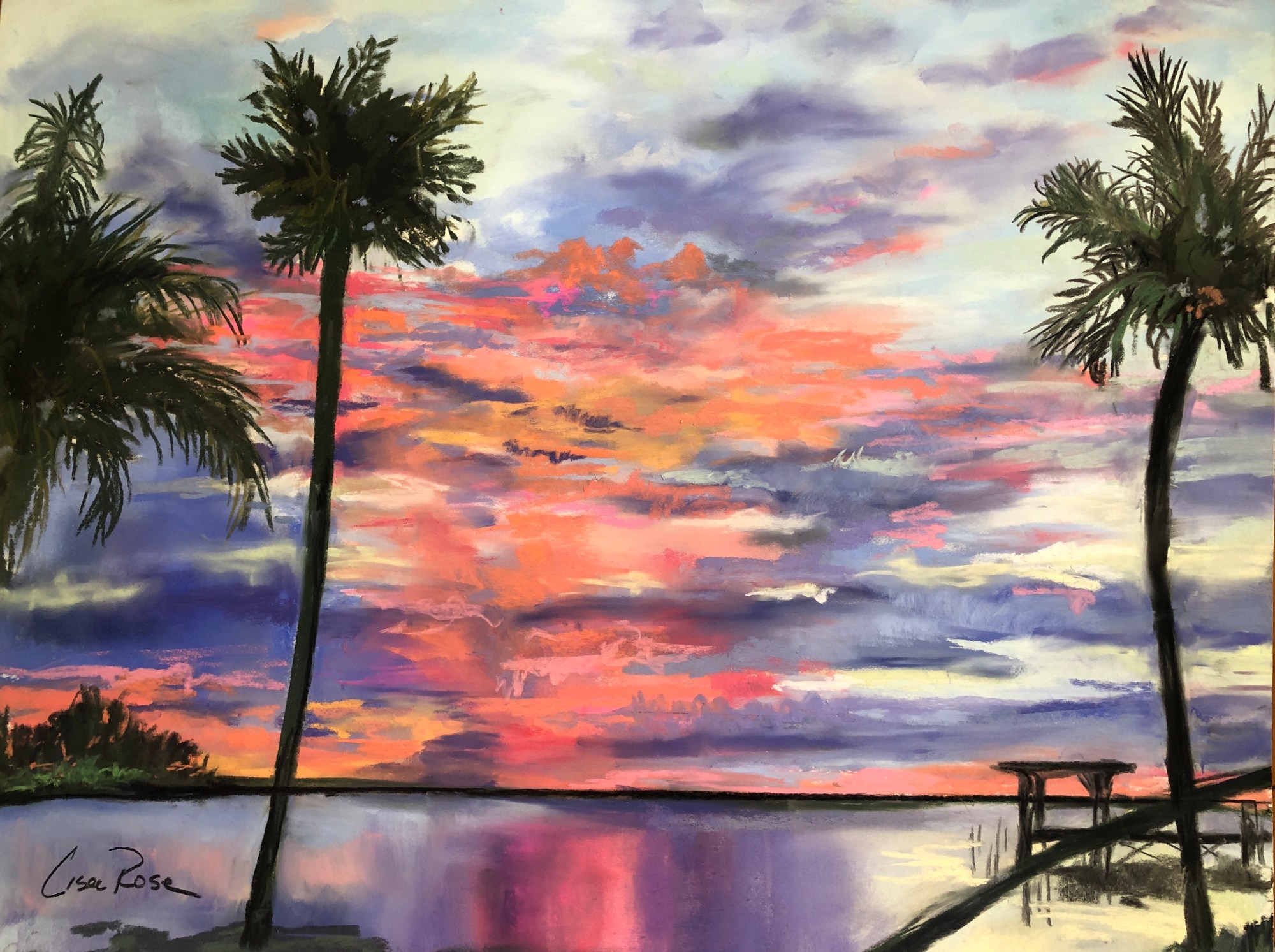 Original pastel by Lisa Rose of a sunrise in Sebastian on the Indian River Lagoon.