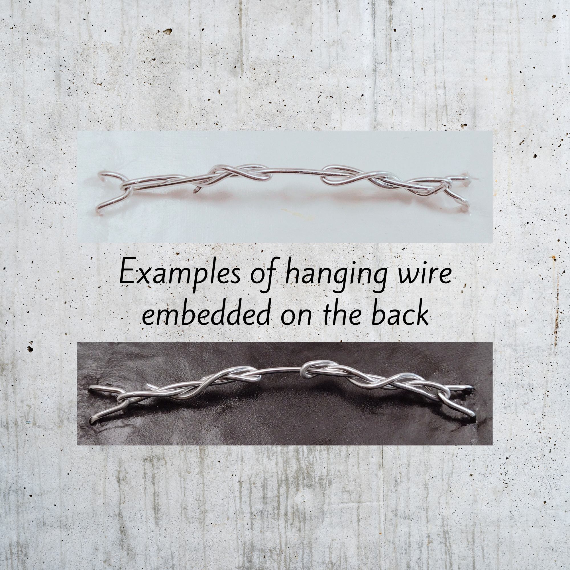 Ready-to-hang with a hanging wire embedded on the back. This piece was sculpted in clay then cast in hydrocal (gypsom cement). For long life in your indoor art collection, simply protect the sculpture from chipping or breakage. No special care beyond that is needed. This piece is meant to be displayed indoors, as it is weather-resistant, but not weather-proof.