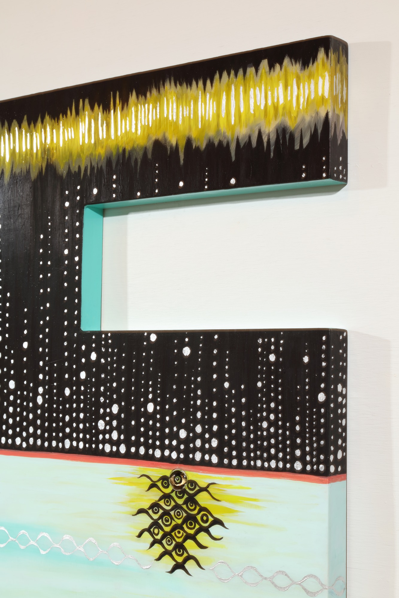 Rearrangeable art made up of two panels, one an abstract base, the other a duck shaped panel made to hang on the base or by itself making the artwork both abstract as well as figurative.