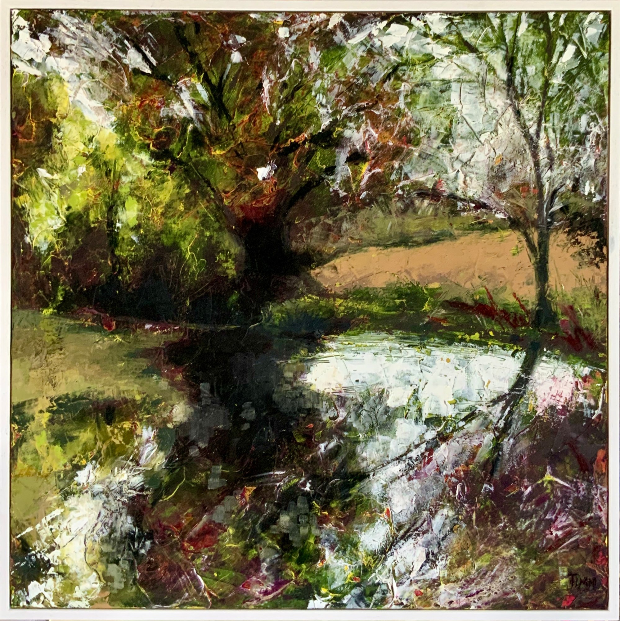 'Gentle Reflection' contains a beautiful colour palette that is traditionally autumnal, including browns and greens. This painting is authentic in its highly textural portrayal of water, as the reflections of the trees appear to ripple and distort in the water. The viewer can easily place themselves in front of the lake, and admire the natural surroundings of British countryside.