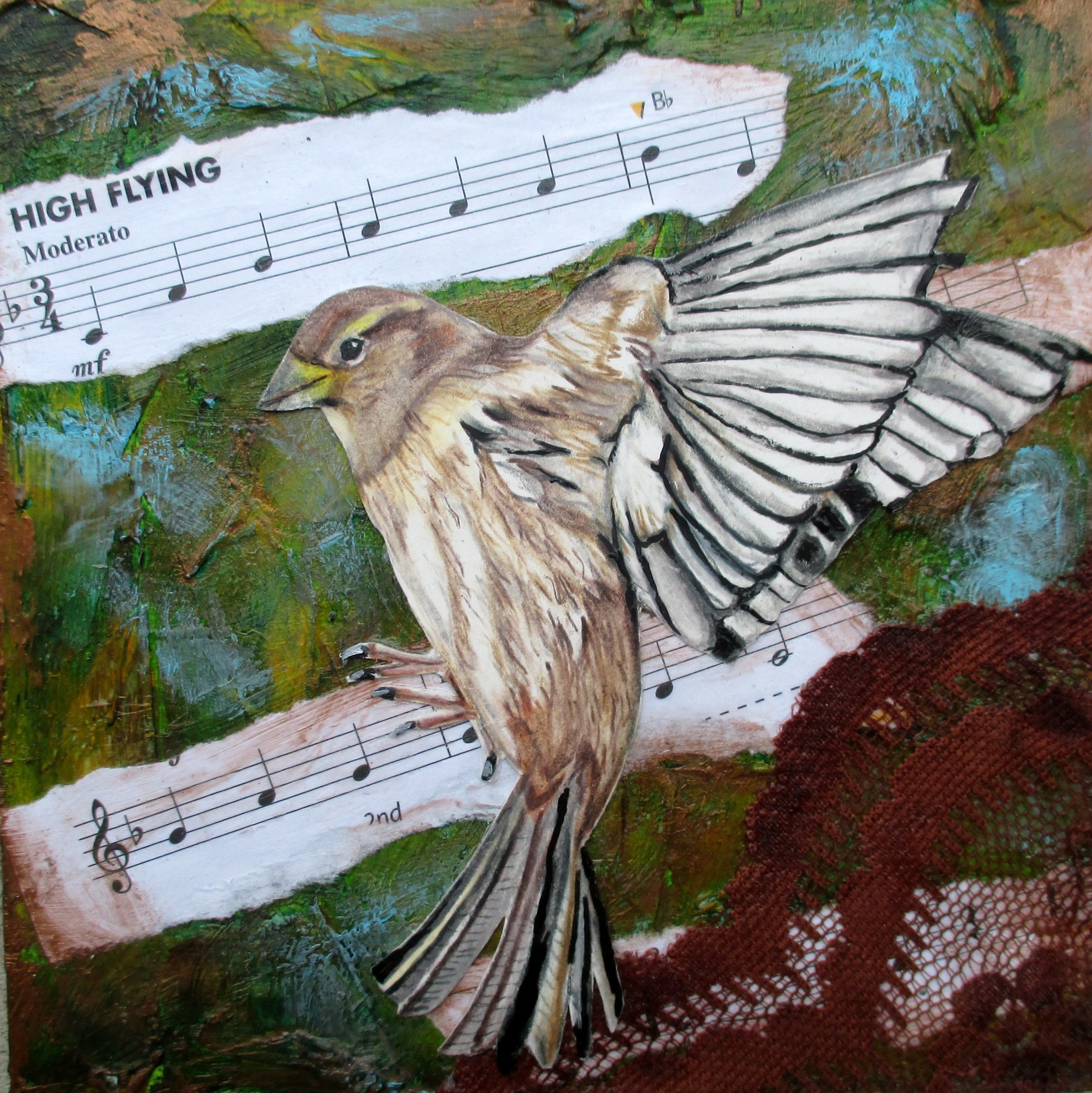 "High Flying", Mixed Media on Wood, framed, 6"x6"